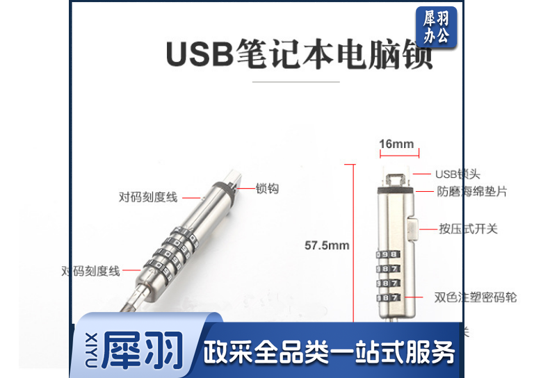 笔记本电脑锁 USB接口防盗锁安全密码锁 USB通用 适用联想华硕ThinkPad神州华为惠普戴尔小米电脑