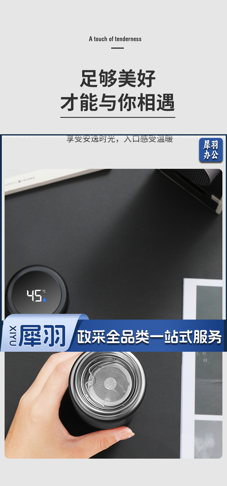 不锈钢保温杯316智能水杯男女士茶水分离(直杯)(若单独定制请联系)