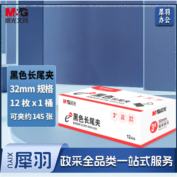 晨光(M&G)文具3#32mm 12只/盒 黑色强力长尾夹 中号金属办公通用票据夹 多功能燕尾夹 ABS92728