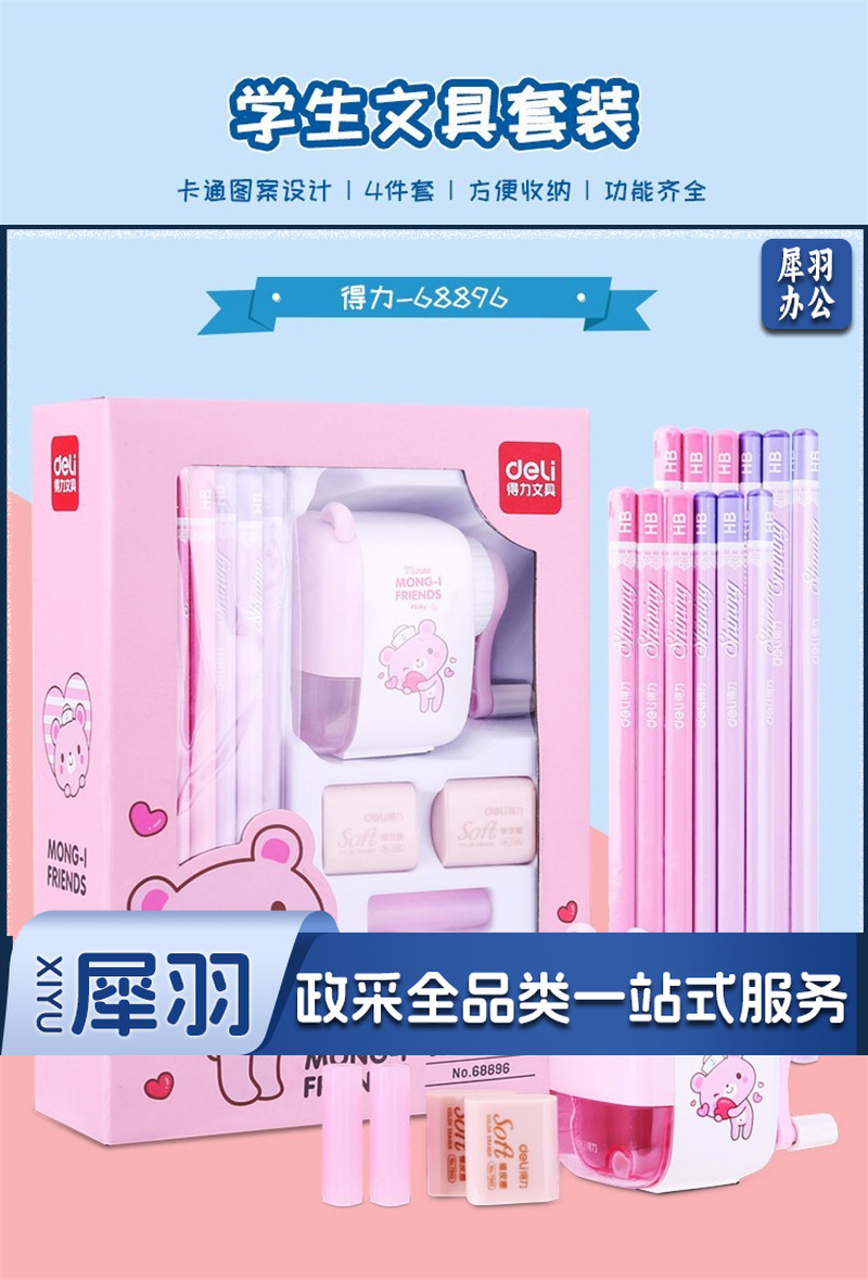 得力(deli) 68896 中小学生书写文具套装 学生礼盒奖品 礼物 学生文具 铅笔套装蓝色博文盛捷
