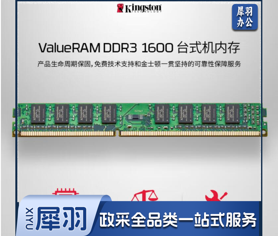 金士顿 8GB内存 DDR3 1600 台式机内存条