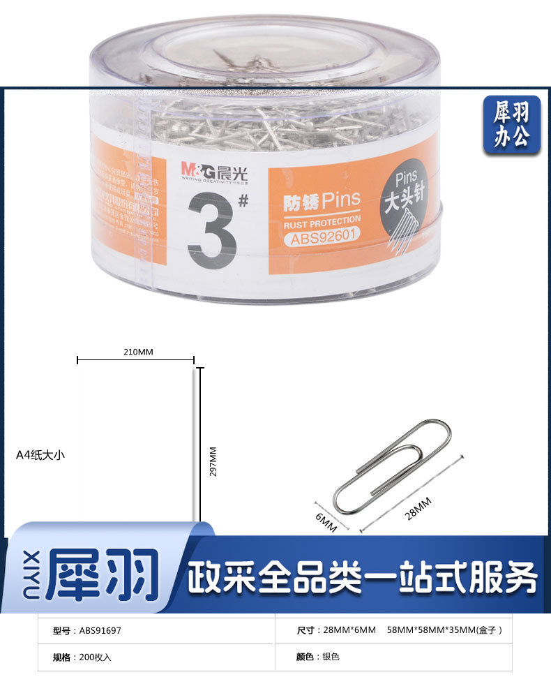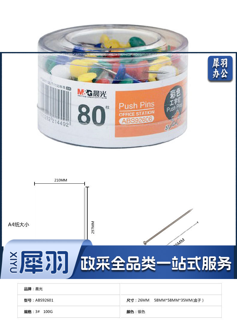 晨光(M&G) 彩色工字钉 筒装 80枚/筒