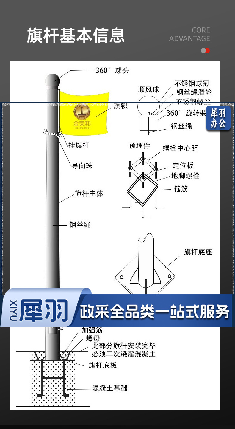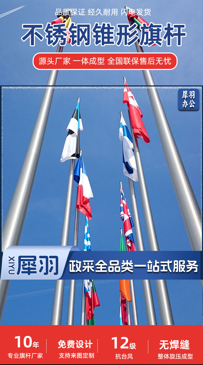 户外不锈钢旗杆手摇电动升降304学校工地企业9米12米15米锥形旗杆(电动旗杆 304不锈钢旗杆每米价格含安装及附件)