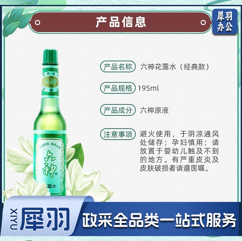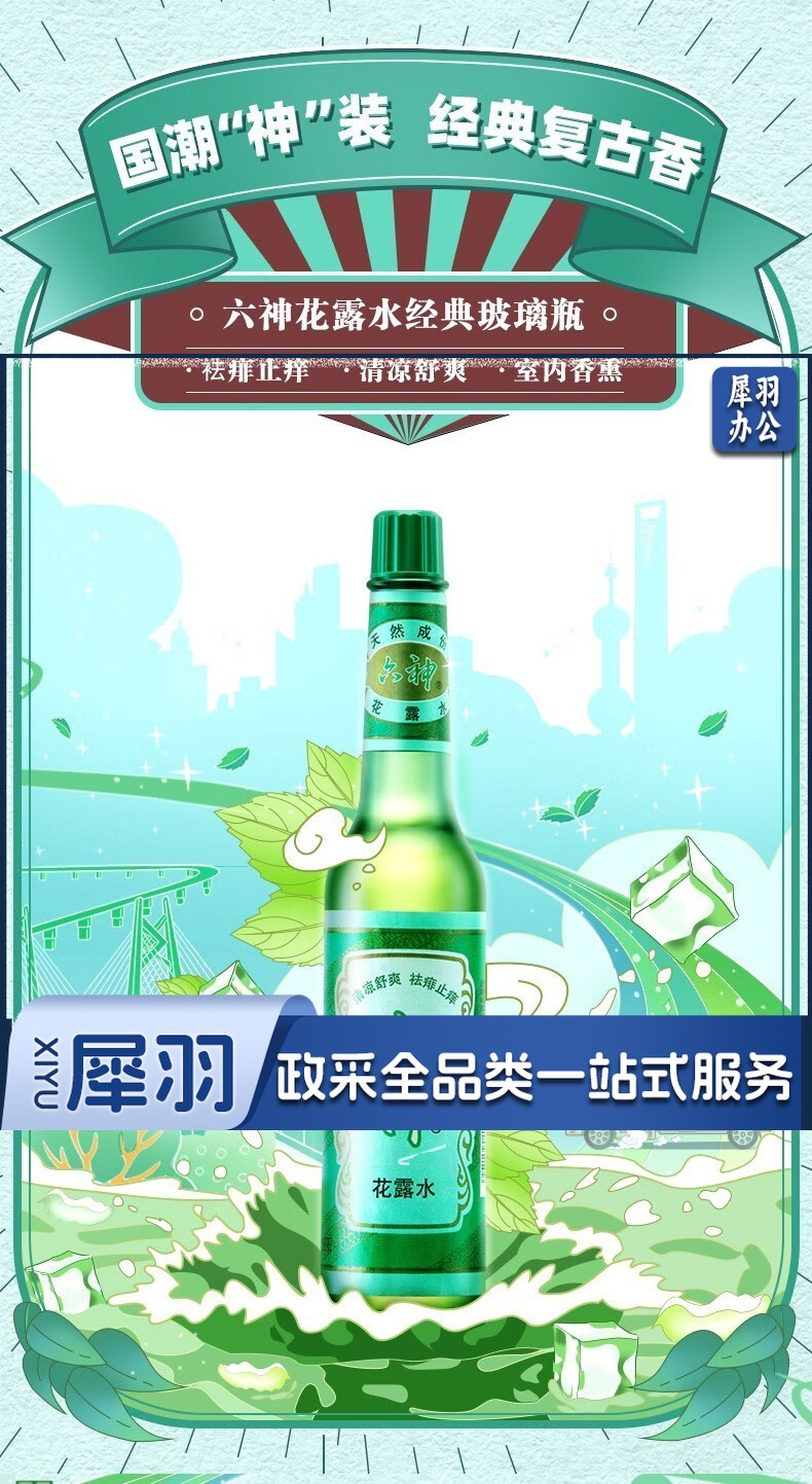 六神花露水 经典玻璃瓶清凉舒爽祛痱止痒195ml