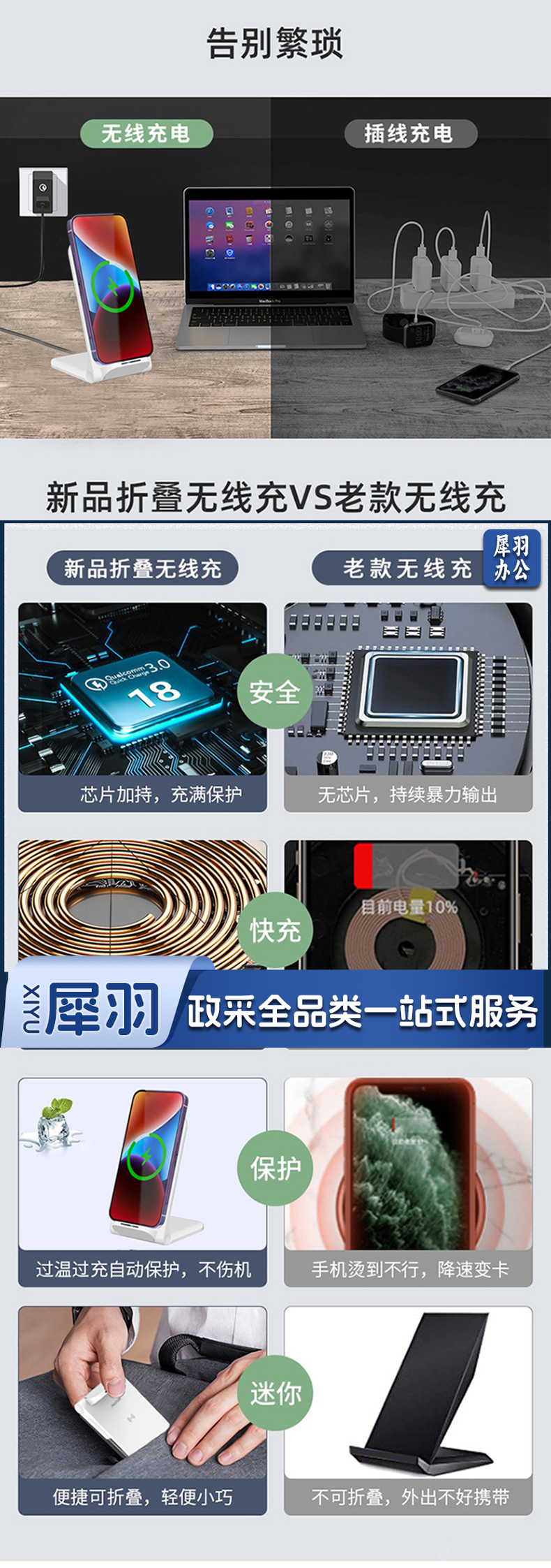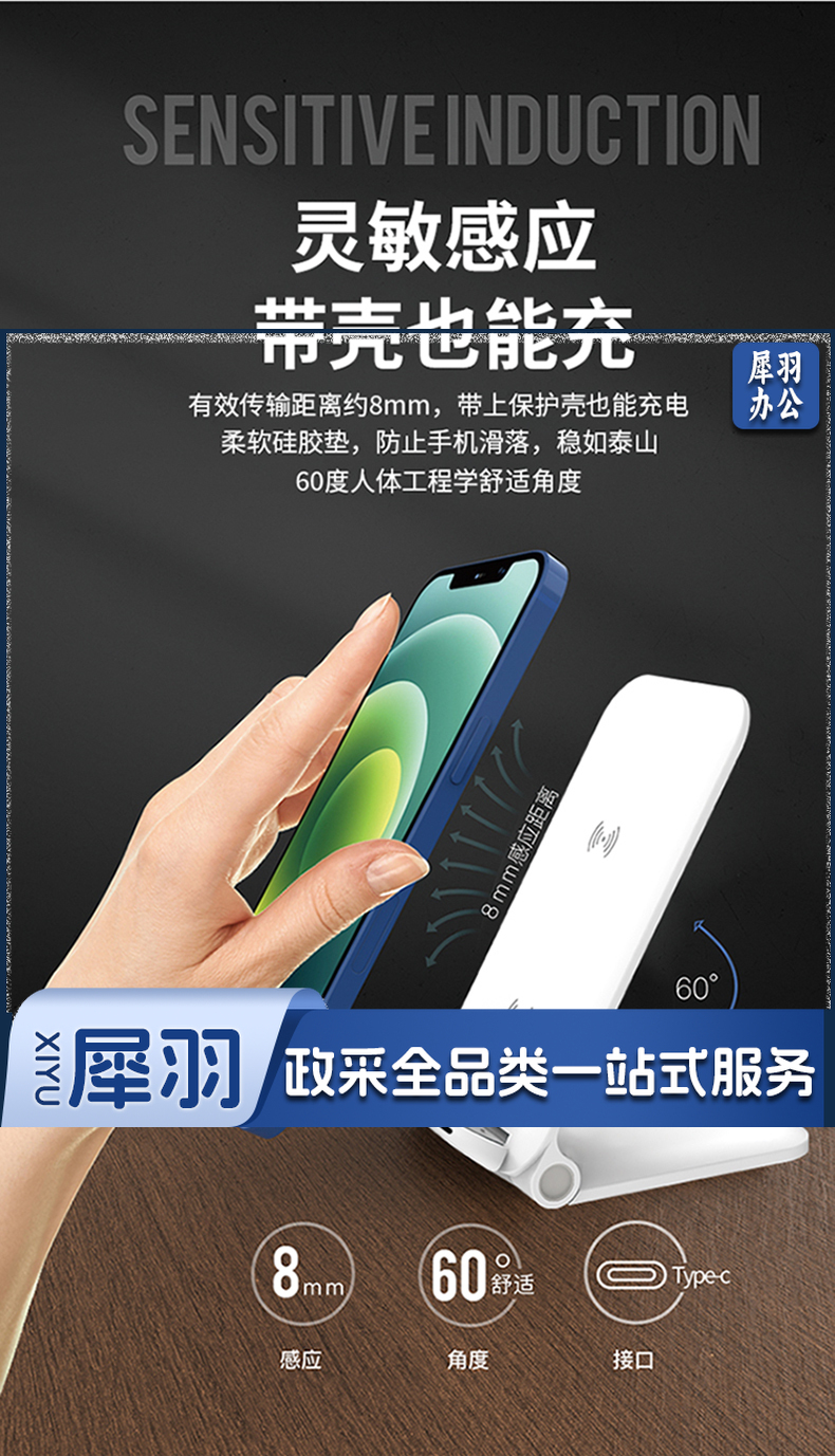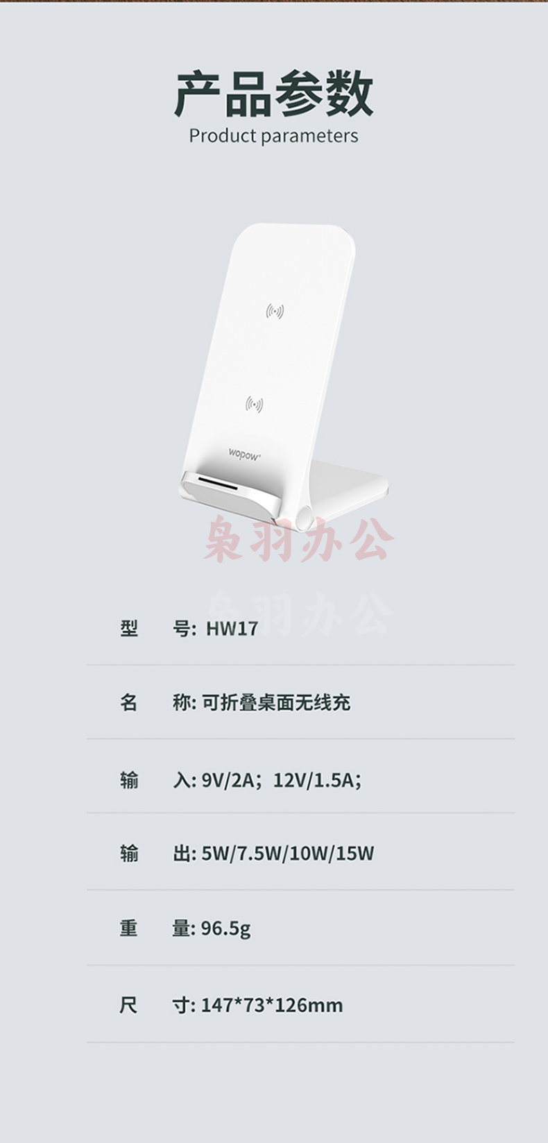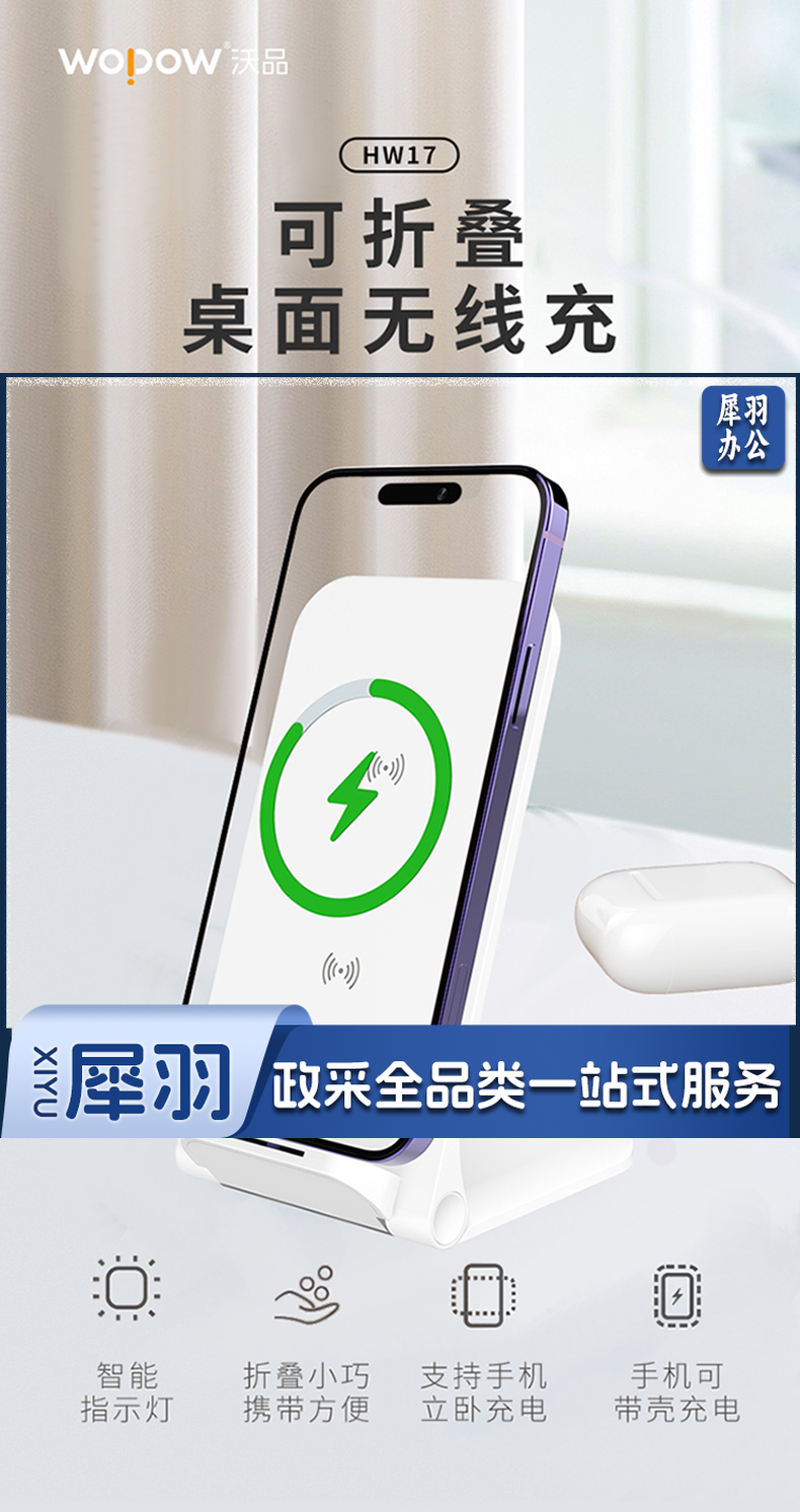 沃品(WOPOW) HW17可折叠桌面无线充电器支架式大功率15w快充 白色