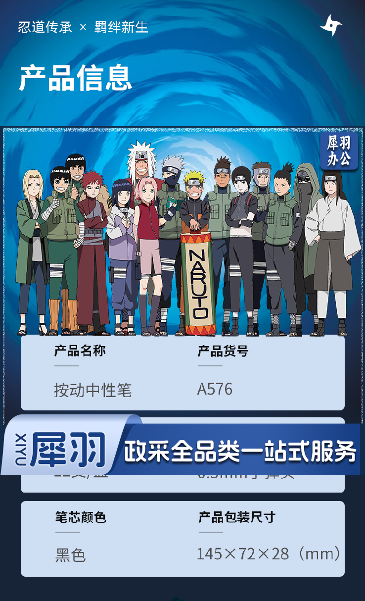得力A576火影忍者臻顺滑学生中性笔0.5mm子弹头(黑)(支)