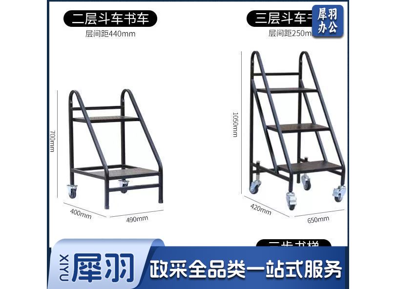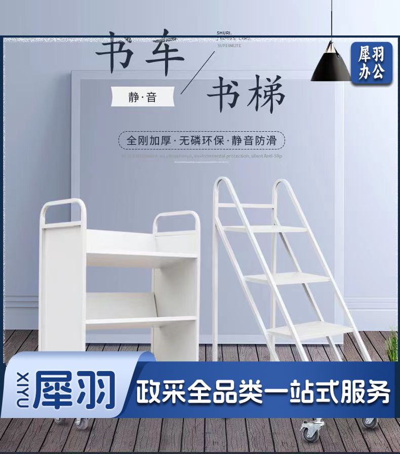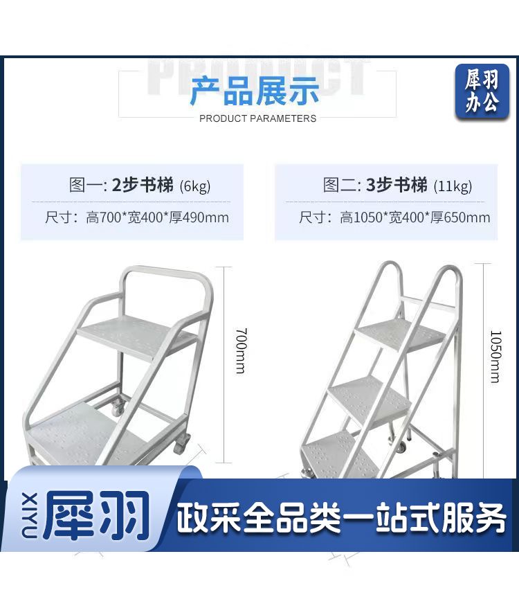 图书馆书车档案室专用二层平板三层V型W型移动手推车两步三步 书梯 登高梯(二层书梯白色)规格齐全 团购或购买其它型号请咨询客服五金附件