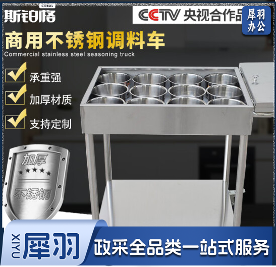 不锈钢调料车 多功能调味车可移动手推车 学校餐厅酒店调味车 加厚款(带刹车)配12缸