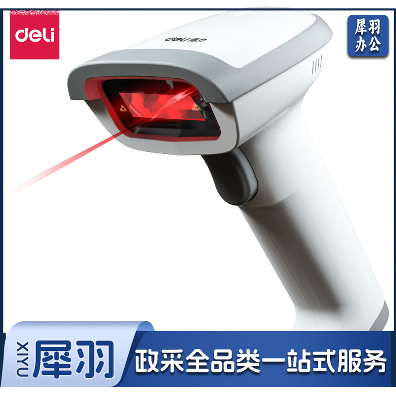 得力14881S(白)激光条码扫描器(台) 手持式一维纸质条码无线扫码枪 仓储物流盘点