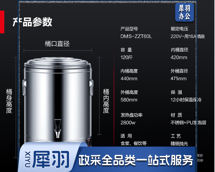 德玛仕DEMASHI KST-50L 开水桶 商用 直饮水机烧水桶 奶茶保温桶烧水器开水器