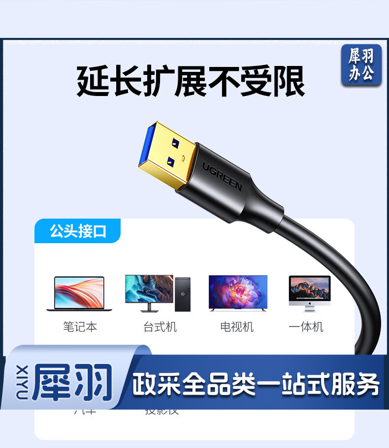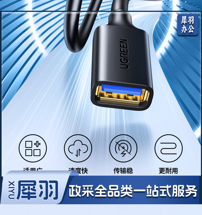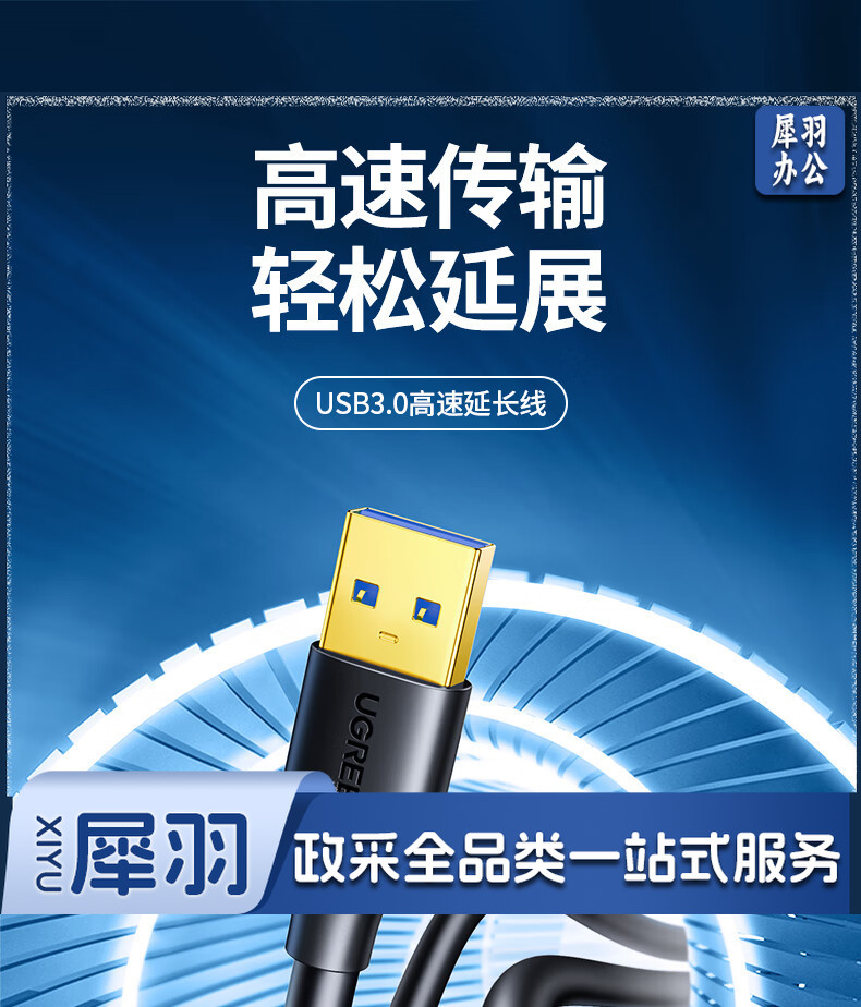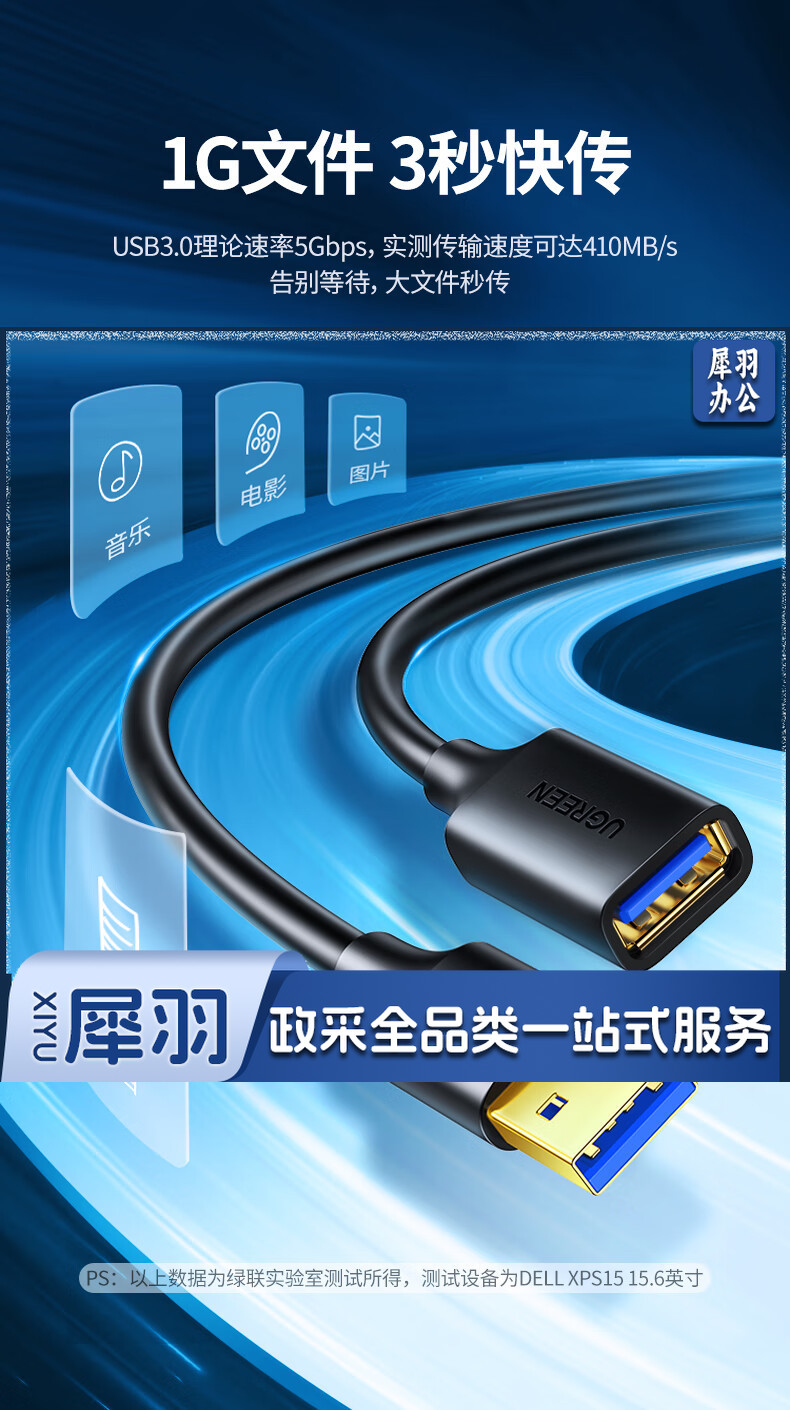 绿联 USB3.0延长线公对母 高速传输数据连接线 电脑U盘鼠标键盘打印机充电器分线器扩展延长加长转接线 3米