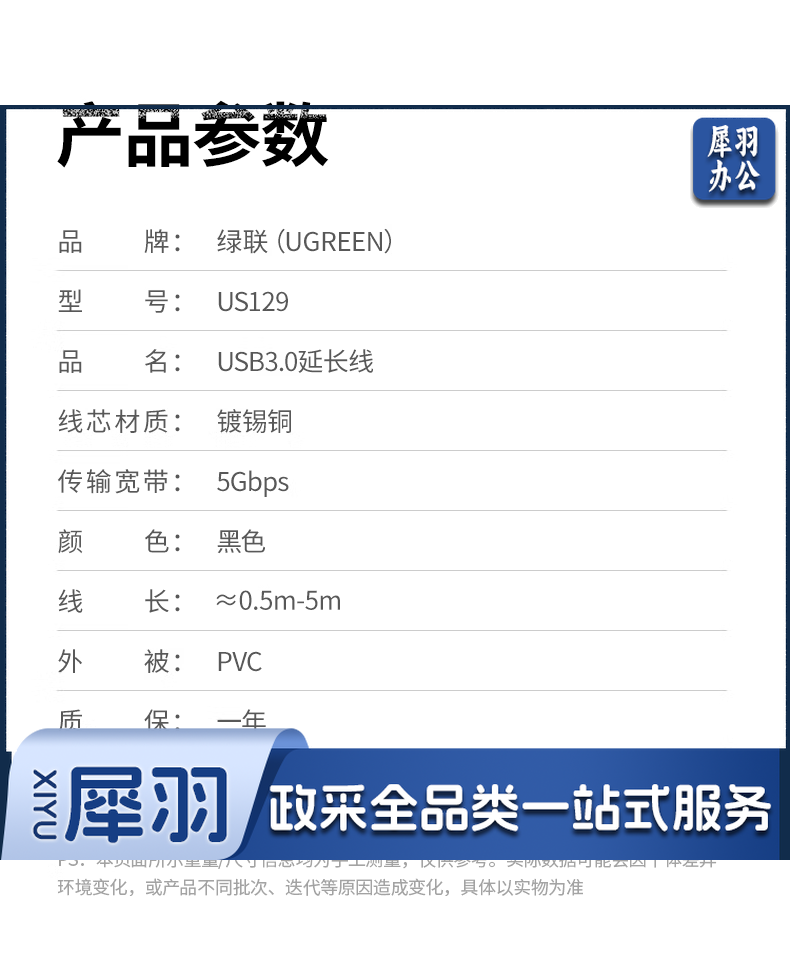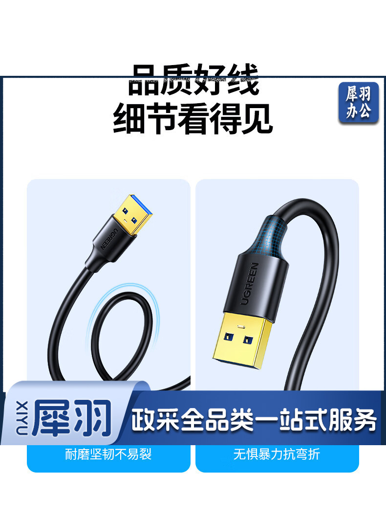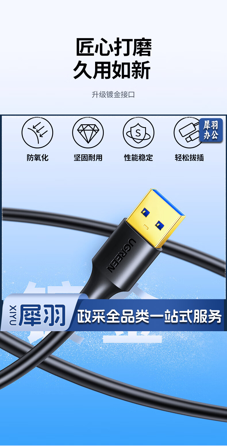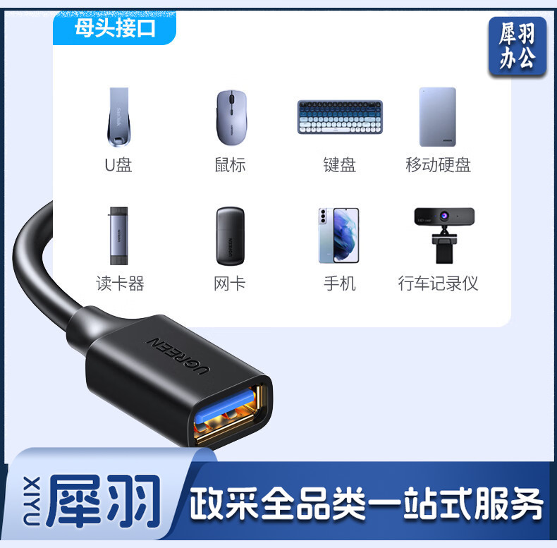 绿联 USB3.0延长线公对母 高速传输数据连接线 电脑U盘鼠标键盘打印机充电器分线器扩展延长加长转接线 3米