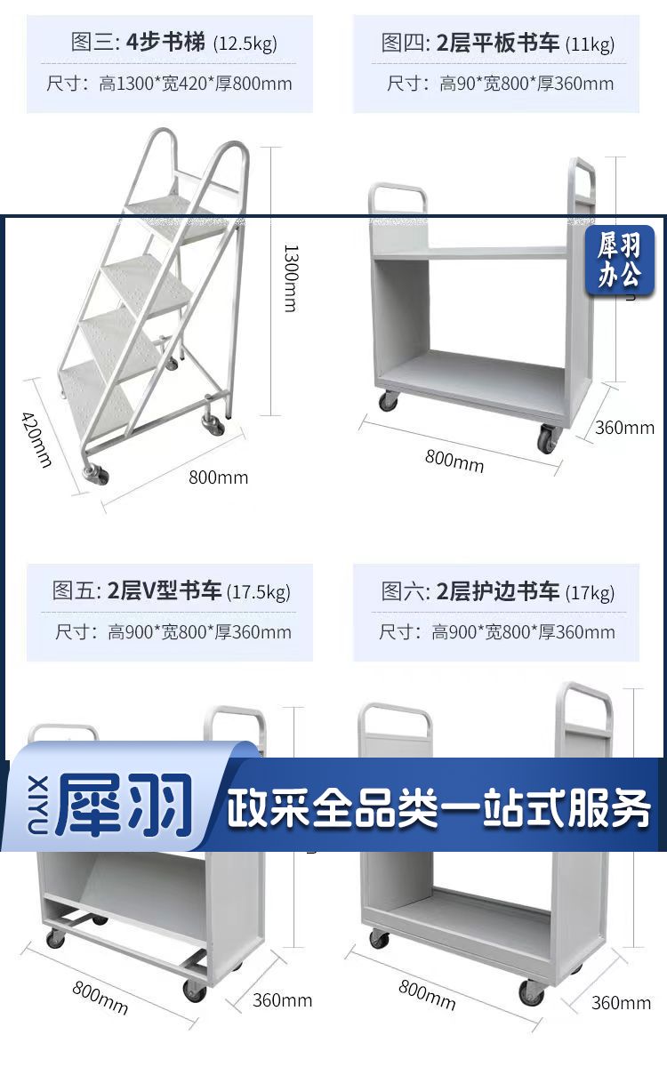 图书馆书车档案室专用二层平板三层V型W型移动手推车两步三步书梯 (三层平板书车)规格齐全 团购或购买其它型号请咨询客服五金附件