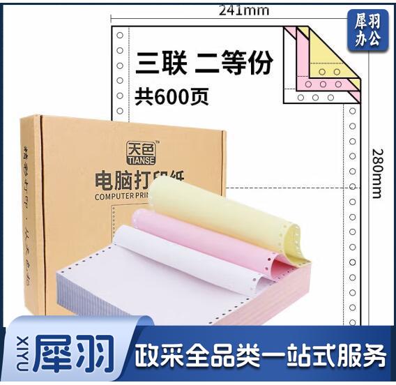 天色 撕边电脑打印纸三联二等分出库送货单/发票清单彩色针式打印纸