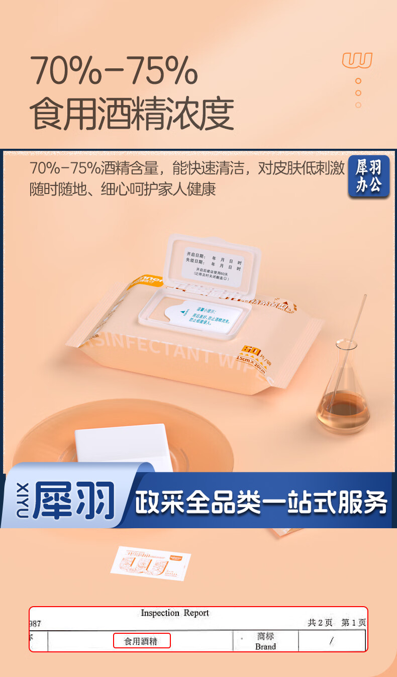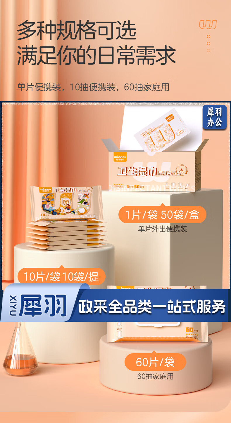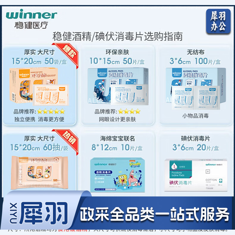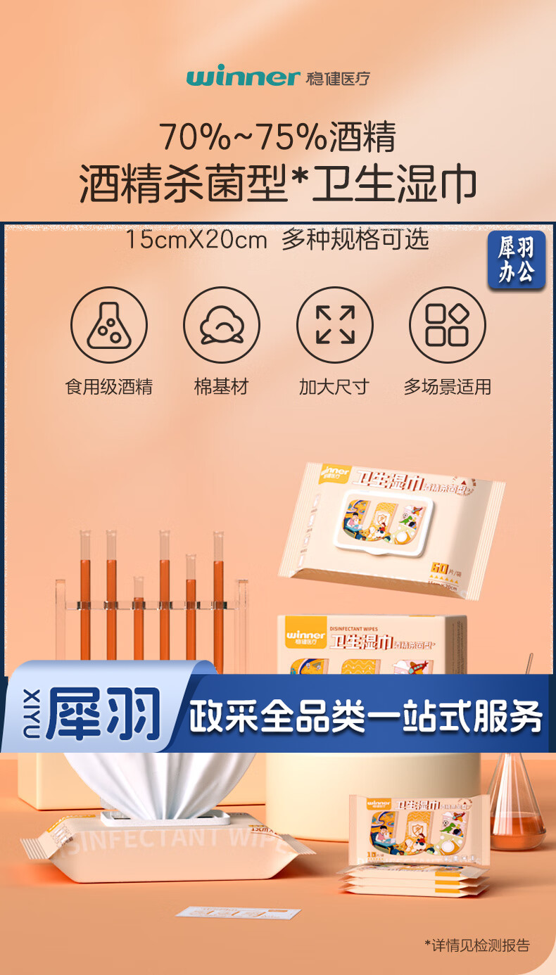稳健(Winner)70%-75%酒精湿巾消毒湿巾 食用级酒精儿童玩具消毒湿巾 杀菌卫生酒精棉片 大尺寸大包 60片/袋