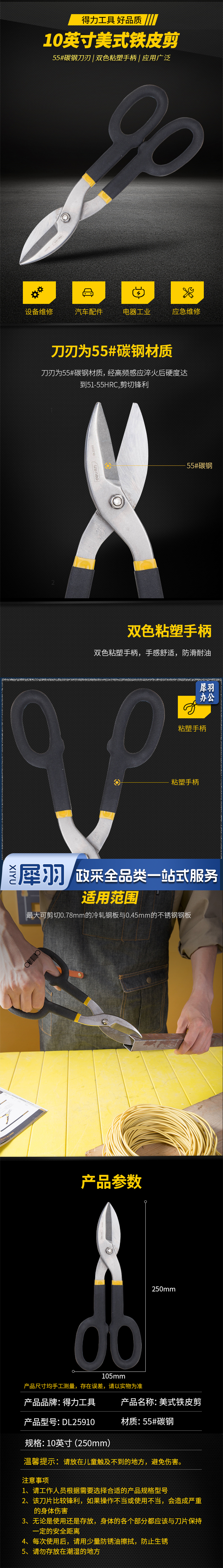得力工具DL25910美式铁皮剪10"(单位:把)