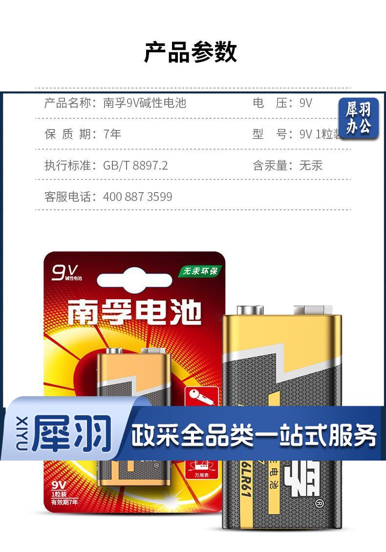 南孚(NANFU)9V碱性电池1粒装 9v 适用于遥控玩具/烟雾报警器/无线麦克风/万用表/话筒/遥控器等 6LR61