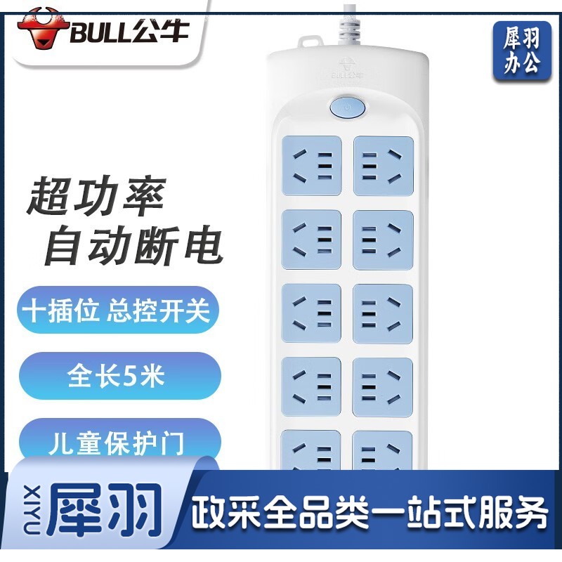 公牛(BULL)超功率保护5米线的公牛10孔插线板上架一款