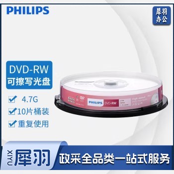 飞利浦(PHILIPS)DVD-RW 可擦写空白刻录光盘光碟 可重复刻录 10片装DVD刻录盘