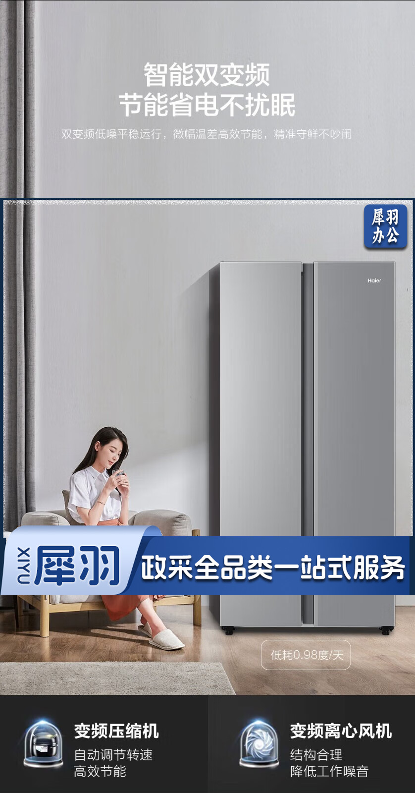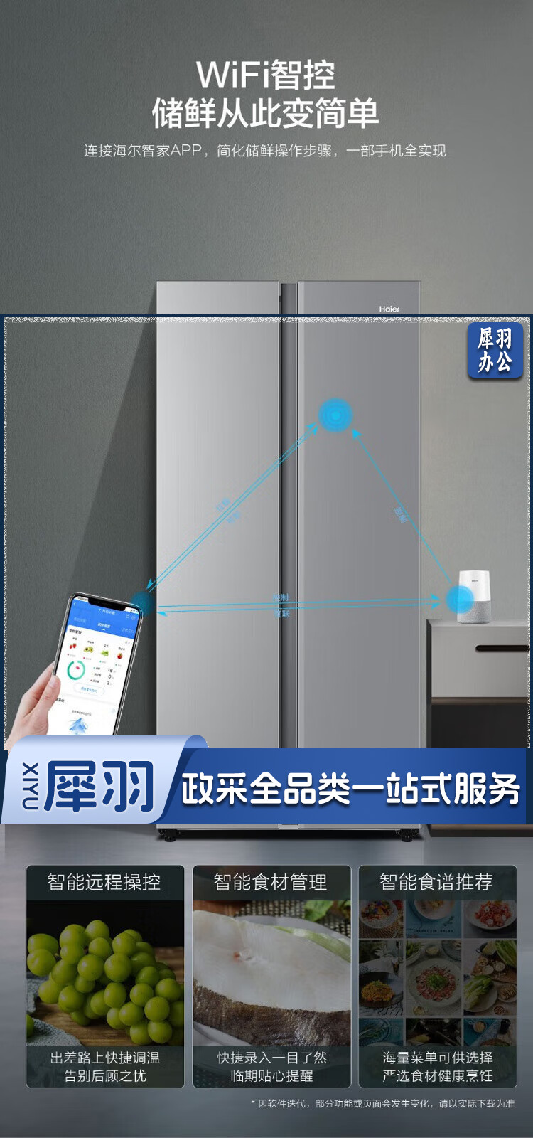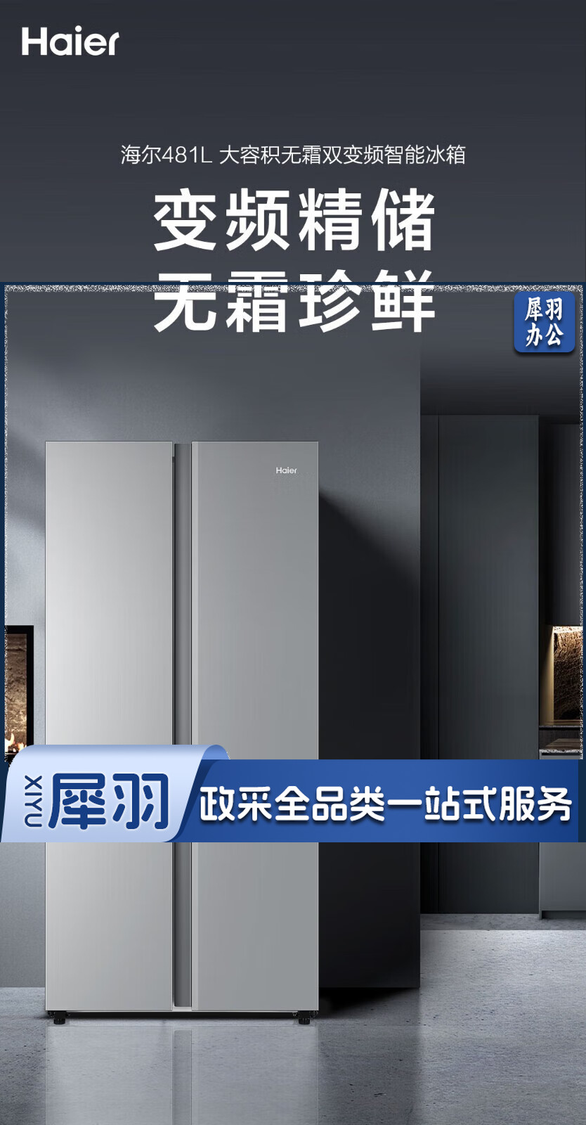 海尔(Haier)海尔冰箱481升对开门双门冰箱风冷无霜智能联网双变频节能超薄家用电冰箱双开门大冰箱