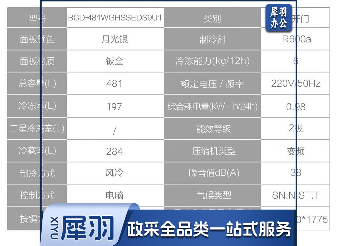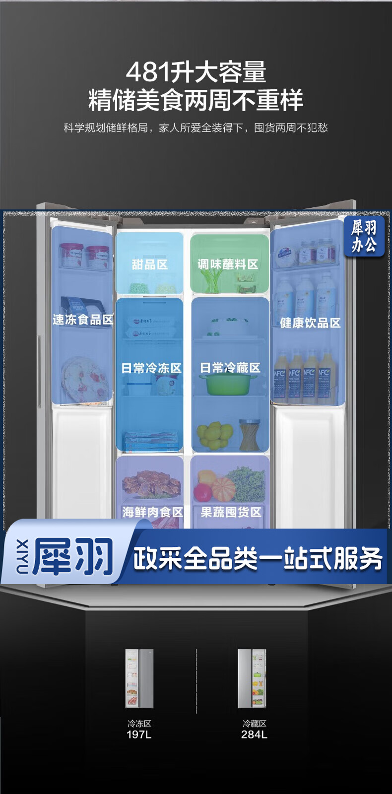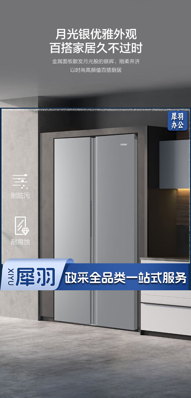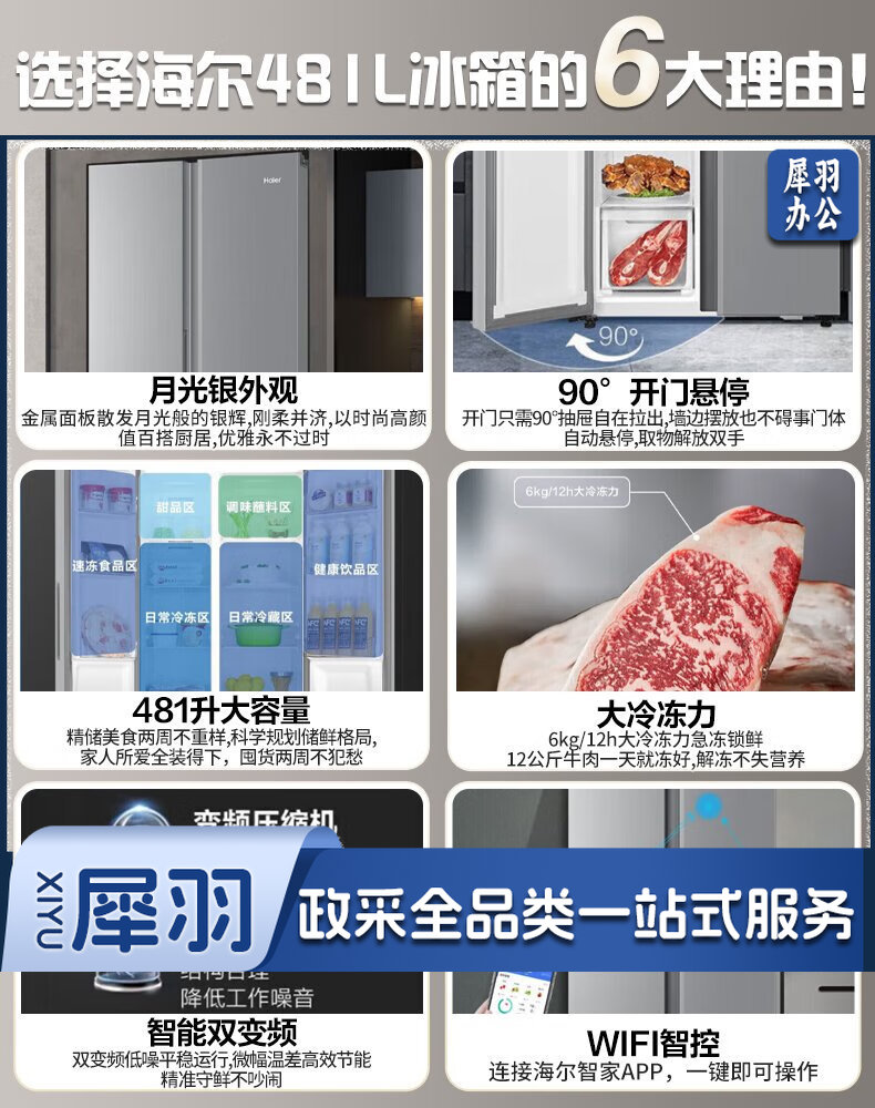 海尔(Haier)海尔冰箱481升对开门双门冰箱风冷无霜智能联网双变频节能超薄家用电冰箱双开门大冰箱