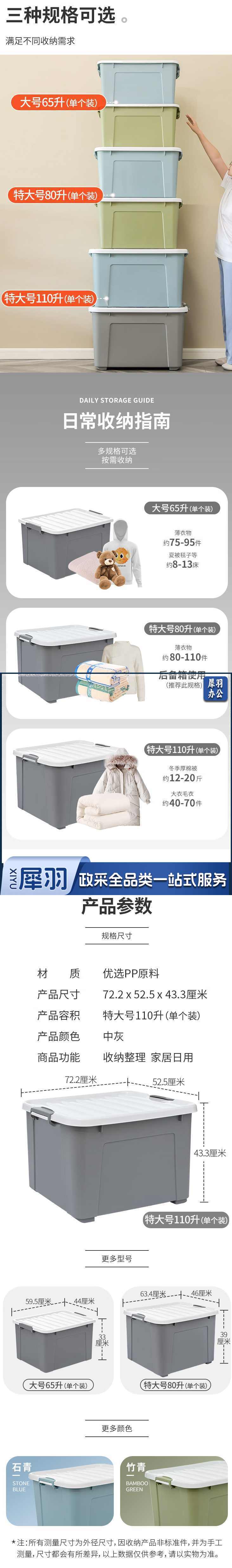 禧天龙 加厚抗压高韧性收纳箱 110升