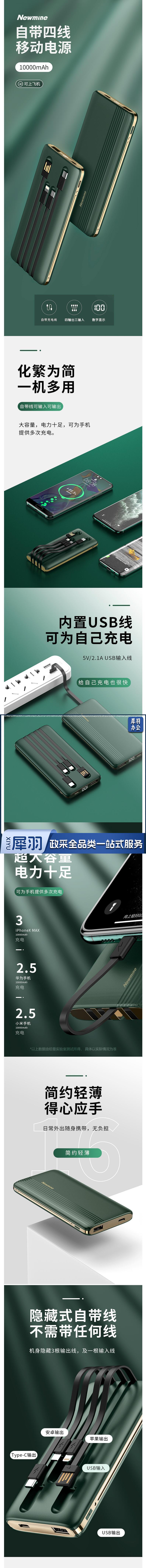 纽曼 (Newmine) 10000毫安时充电宝自带四线数显移动电源适用苹果华为小米等