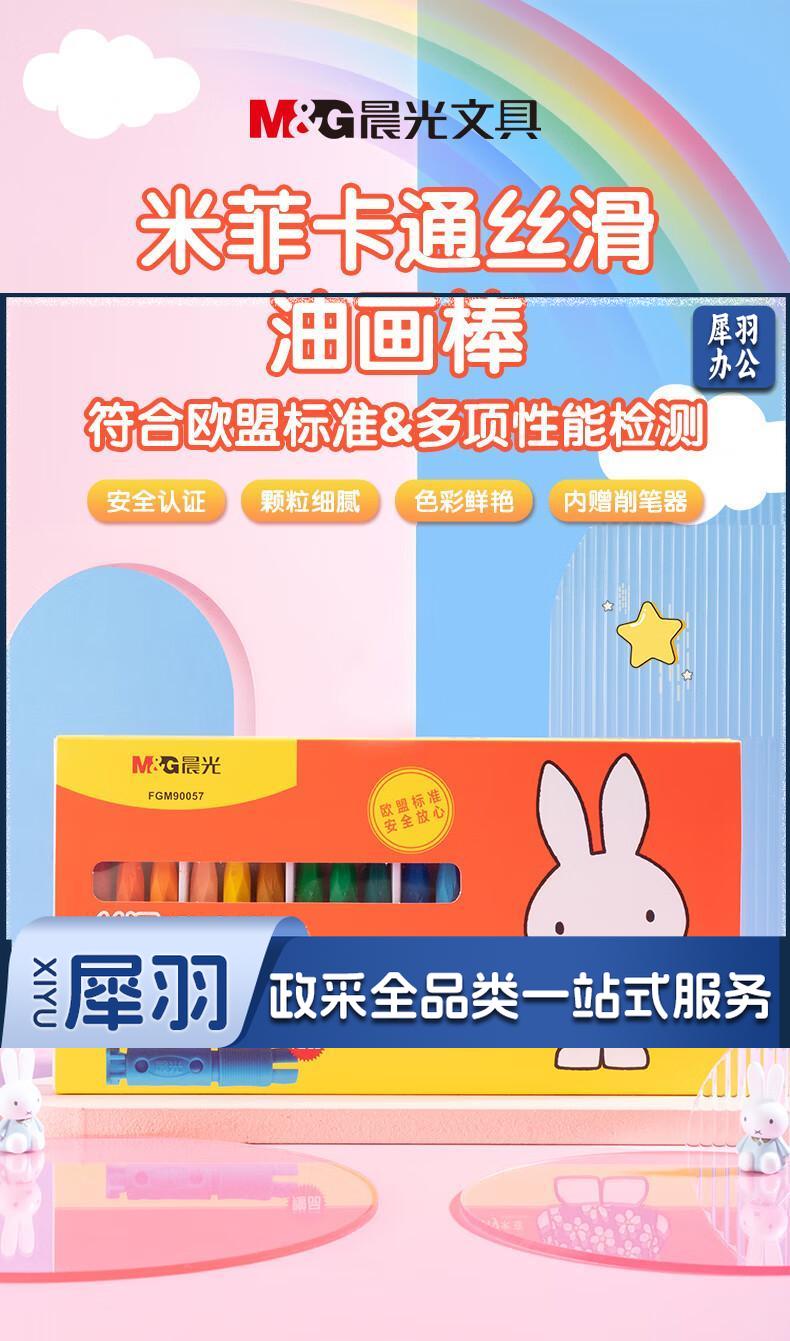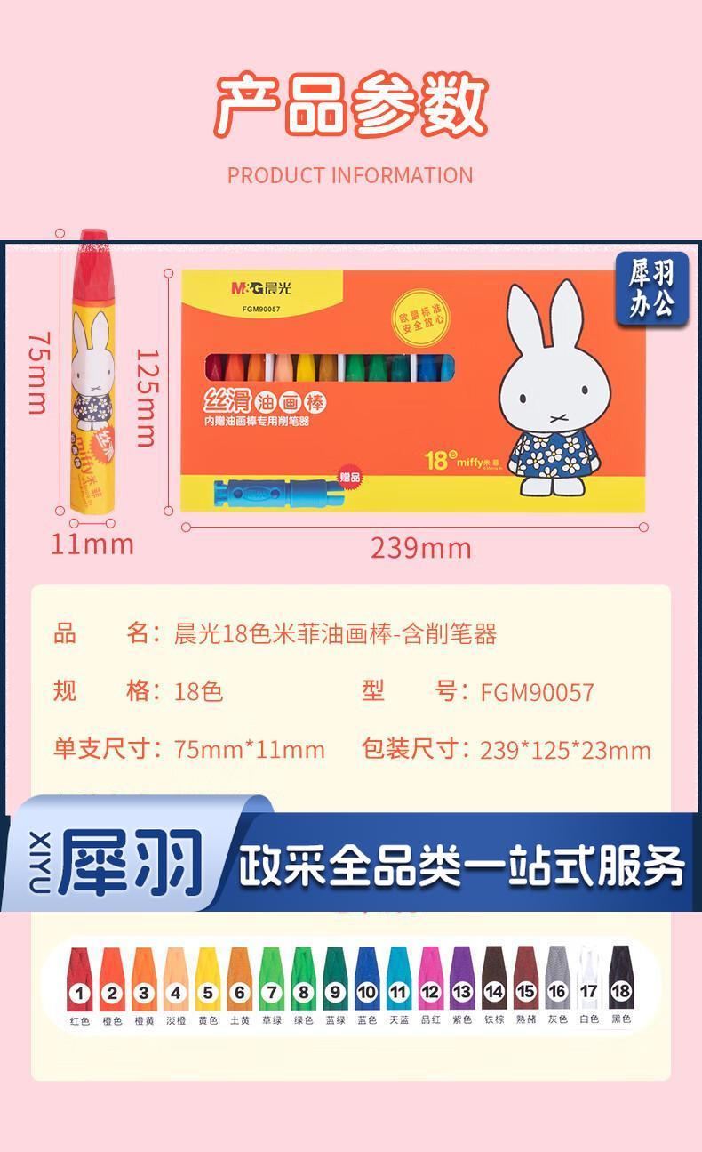 晨光(M&G)文具18色卡通丝滑油画棒 儿童涂鸦绘画笔 米菲系列蜡笔套装 18支/盒FGM90057开学必备(5盒起送)