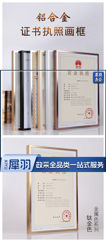 铝合金A3三证合一营业执照相框挂墙,工商税务画框,证书框 A3 挂式