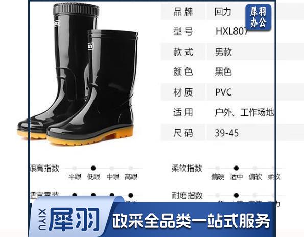 回力雨鞋男士高筒防水雨鞋户外雨靴套鞋 HXL807 黑色中筒 42码