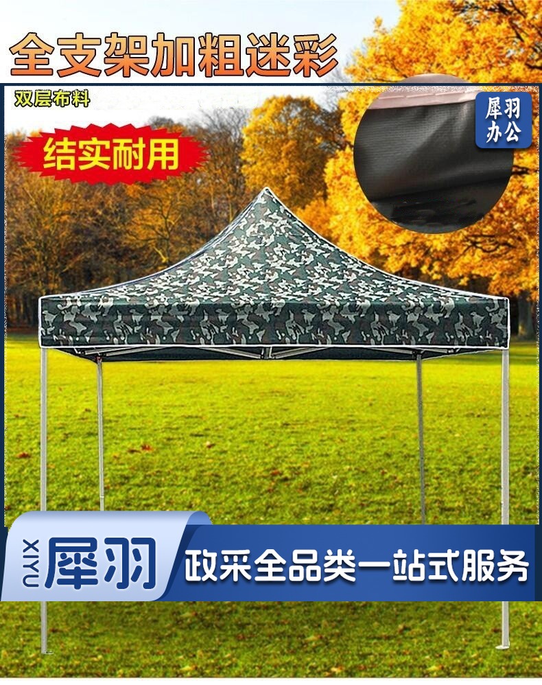 户外遮阳棚 四角帐篷 迷彩遮阳伞遮雨棚摆摊遮雨棚广告伸缩车棚 3*3米【双层布面+加粗支架】