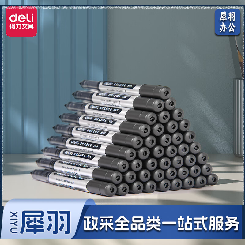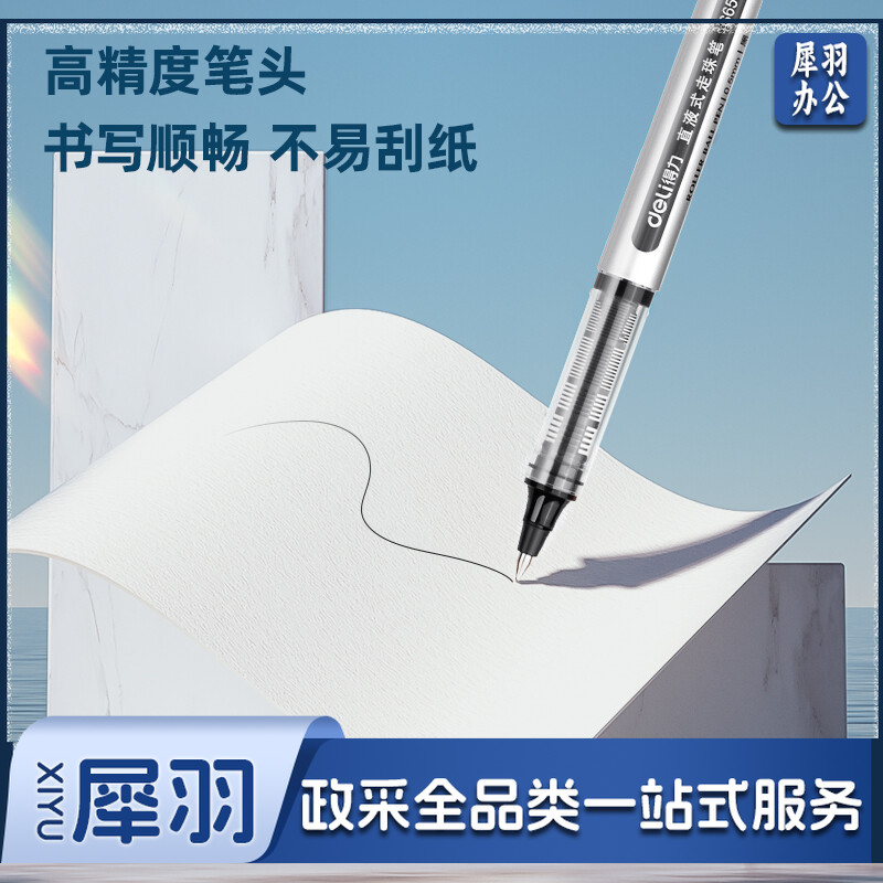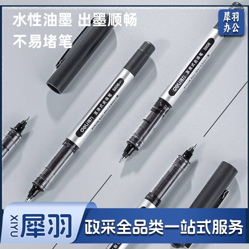 得力(deli)直液笔 0.5mm子弹头学生签字笔 办公中性笔水笔走珠笔 办公用品 黑色 50支/盒 33475