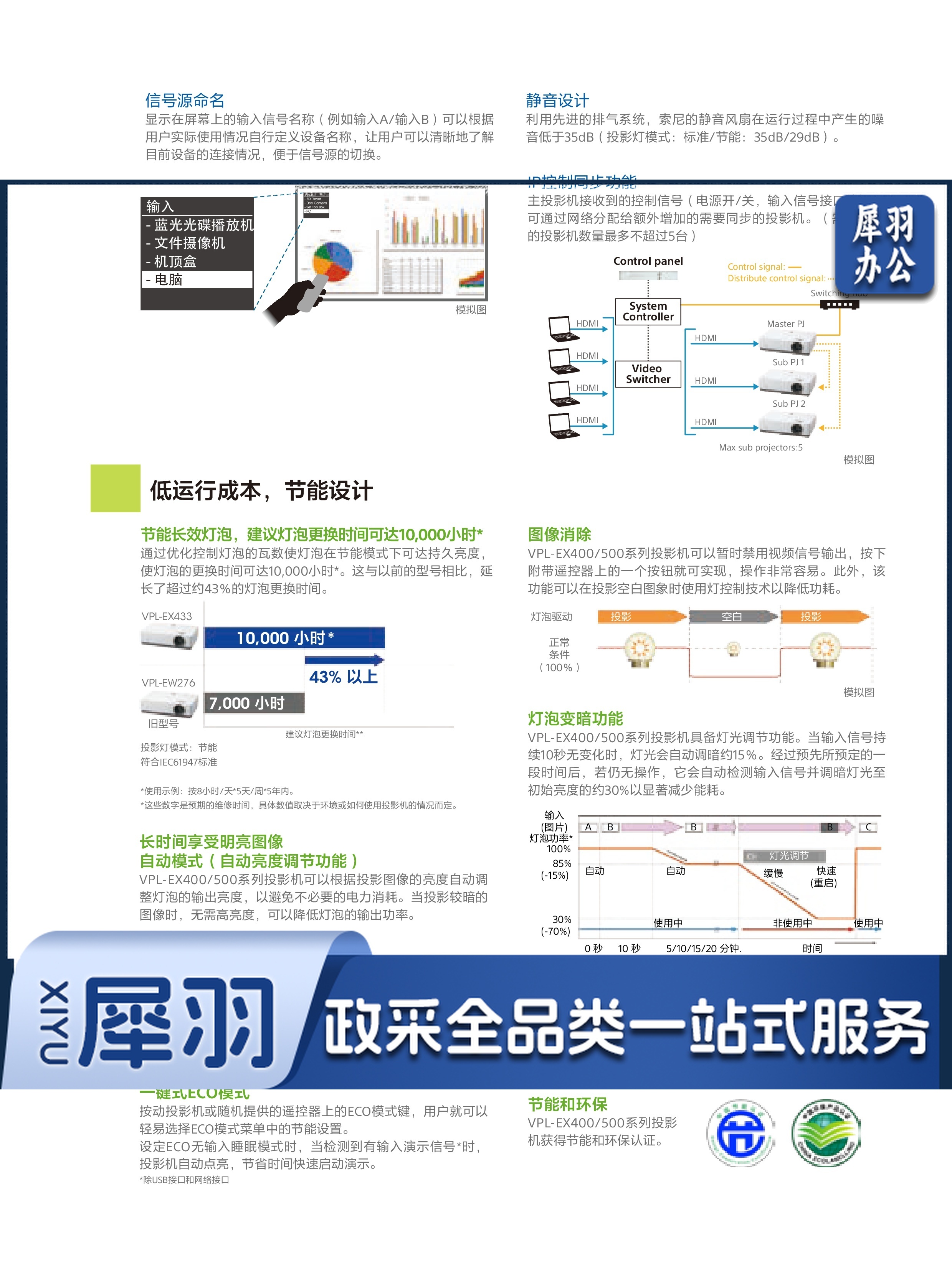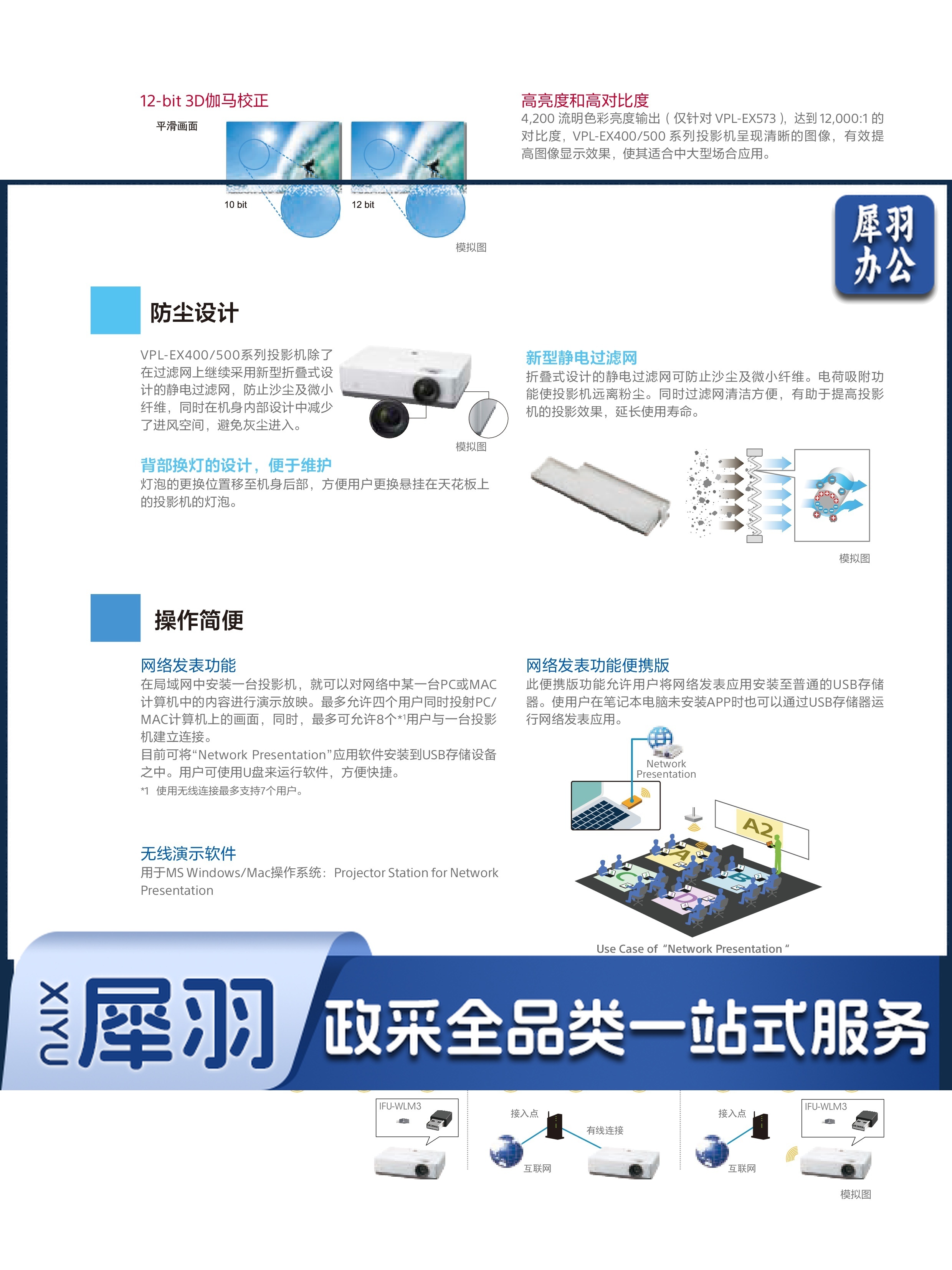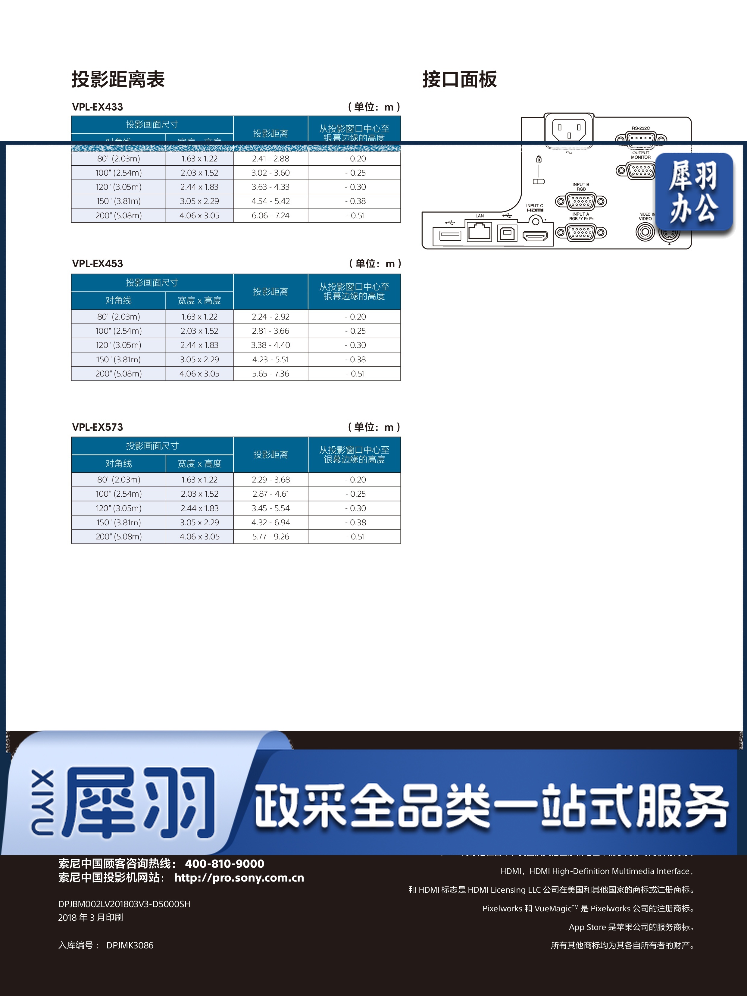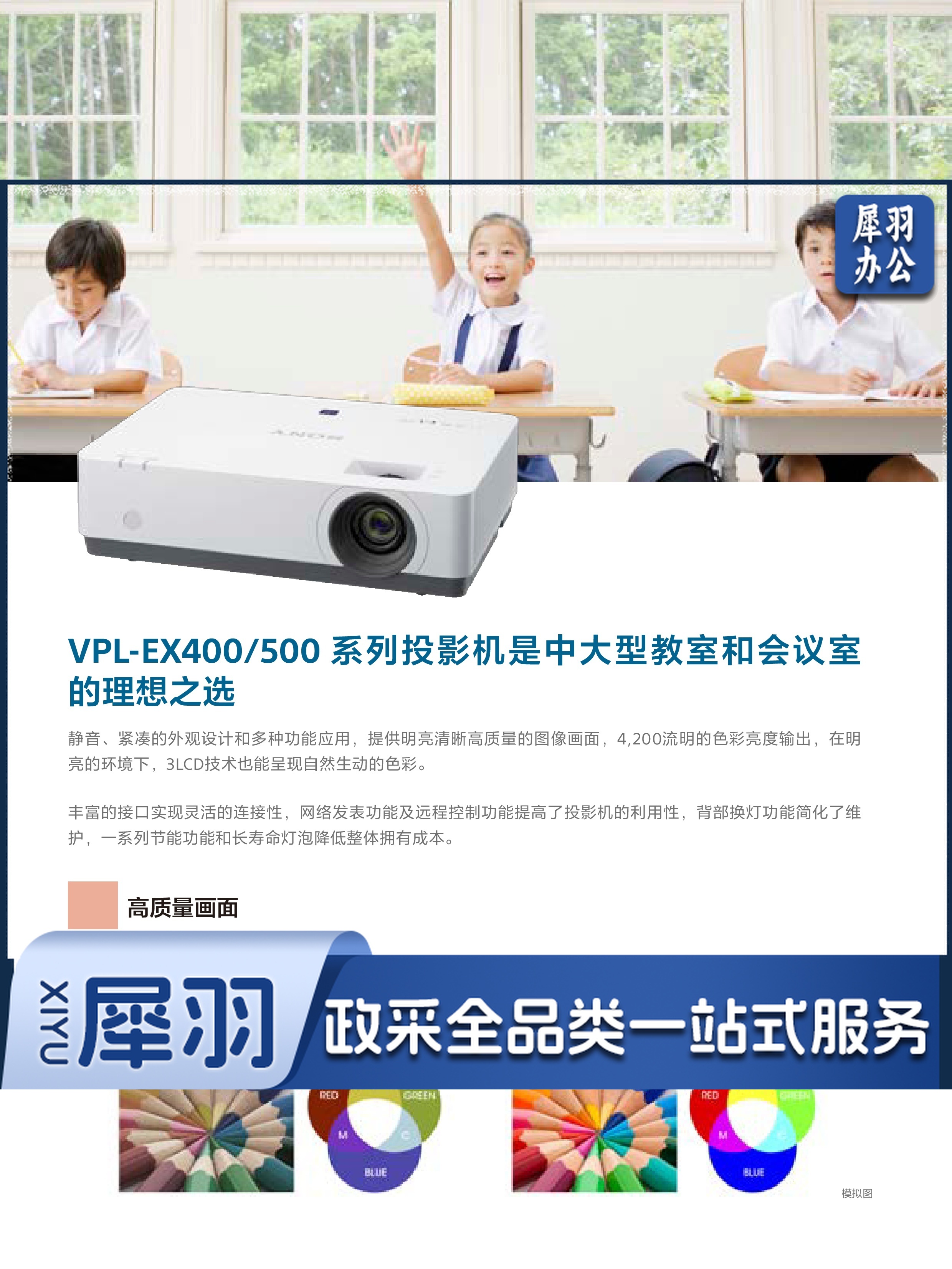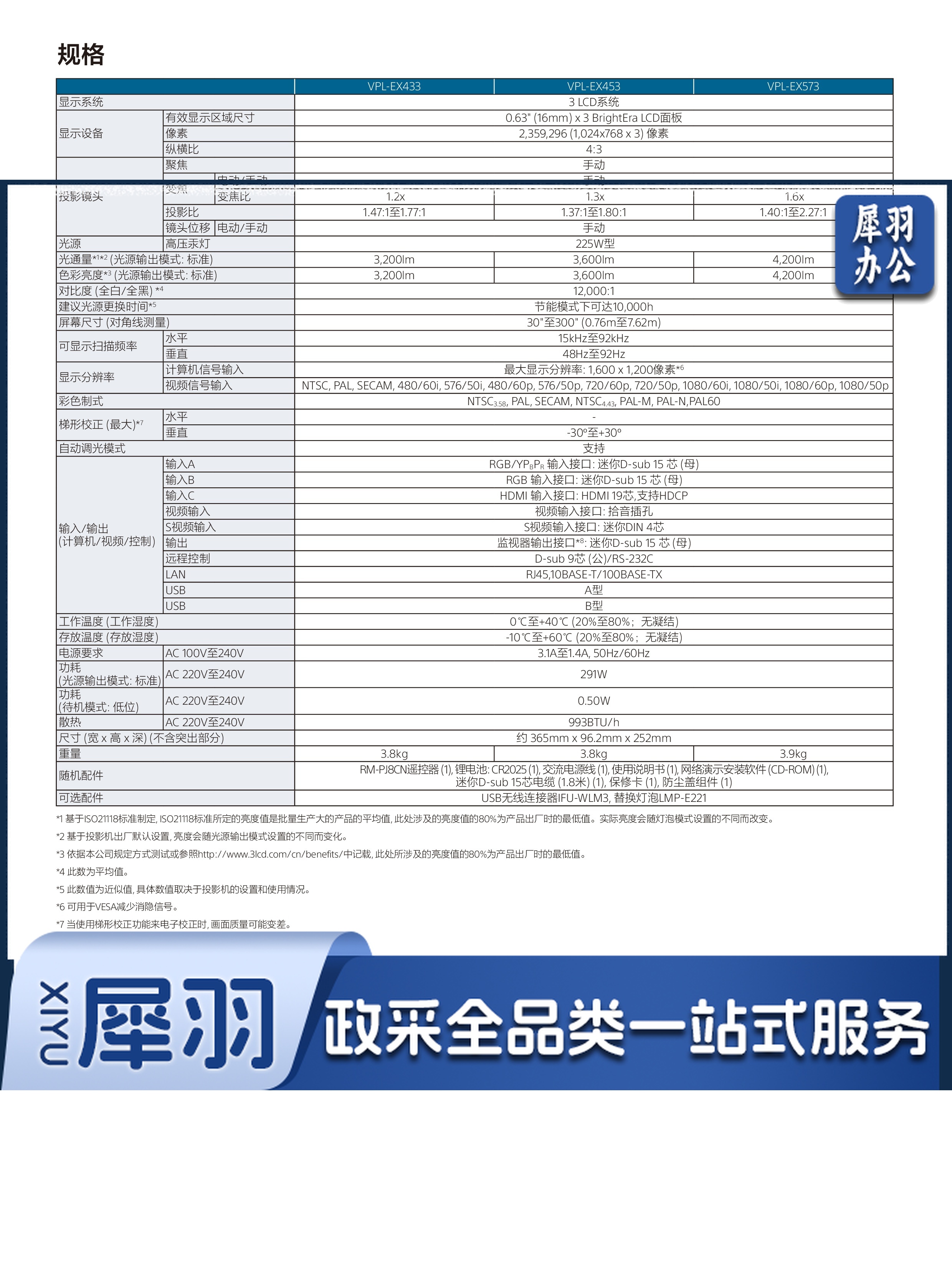索尼 VPL-EX573 办公投影机 投影仪 白色