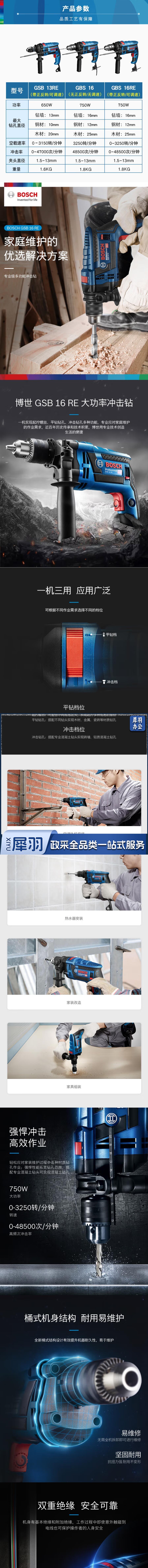 博世 GSB16冲击钻手电钻750瓦16mm不带正反转