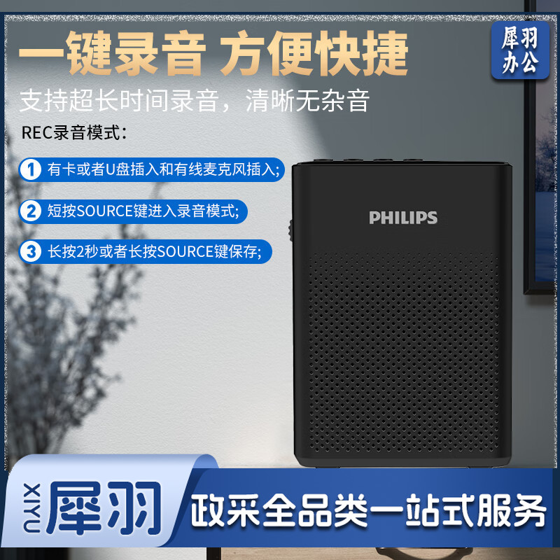 飞利浦(PHILIPS)SBM200 有线小蜜蜂扩音器教师专用 便携式插卡音箱 导游腰挂麦克风喇叭教学讲课钢琴黑