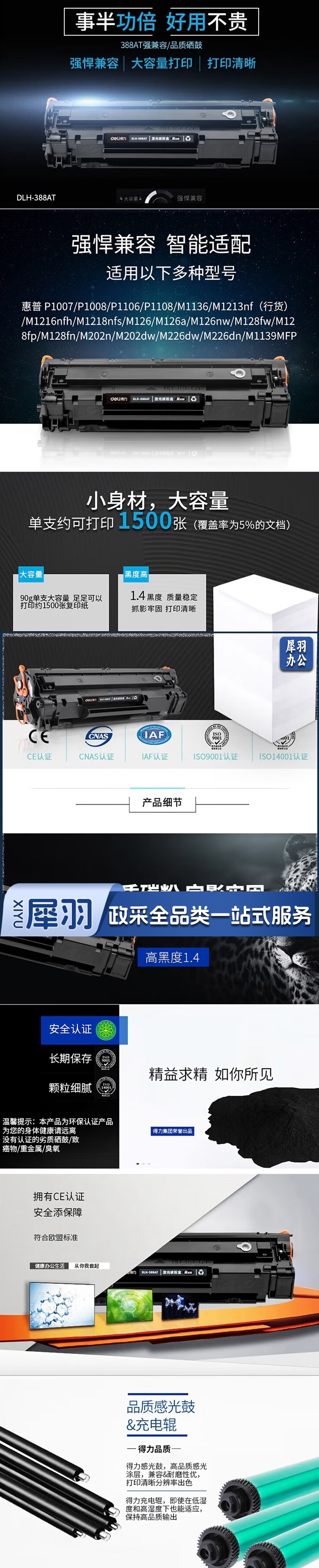 得力(deli)黑色硒鼓 DLH-388AT 适用HP P1007/P1008/P1106 单支装