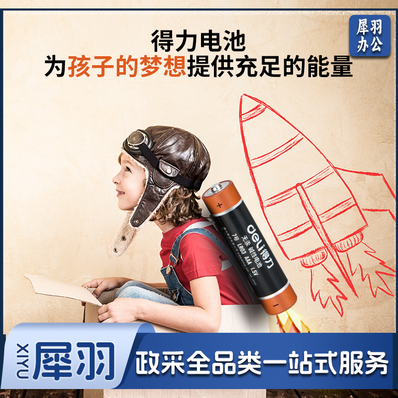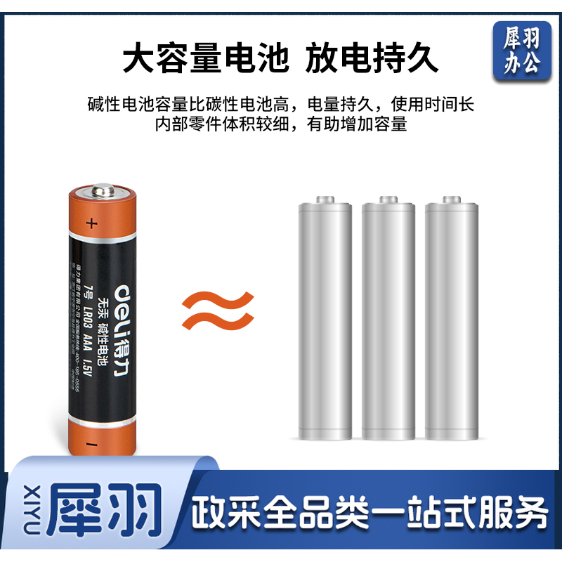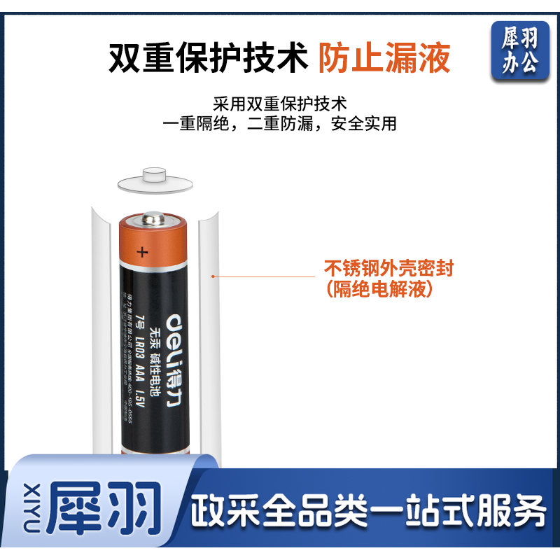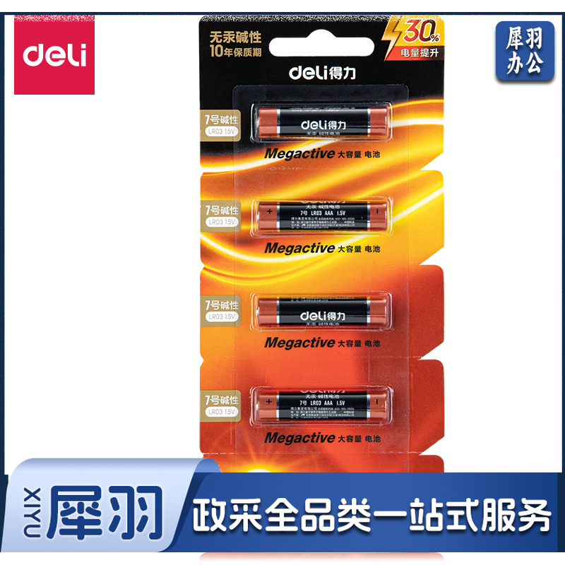 得力18511碱性7号电池5粒撕卡装(黑)5粒/卡,50粒/盒