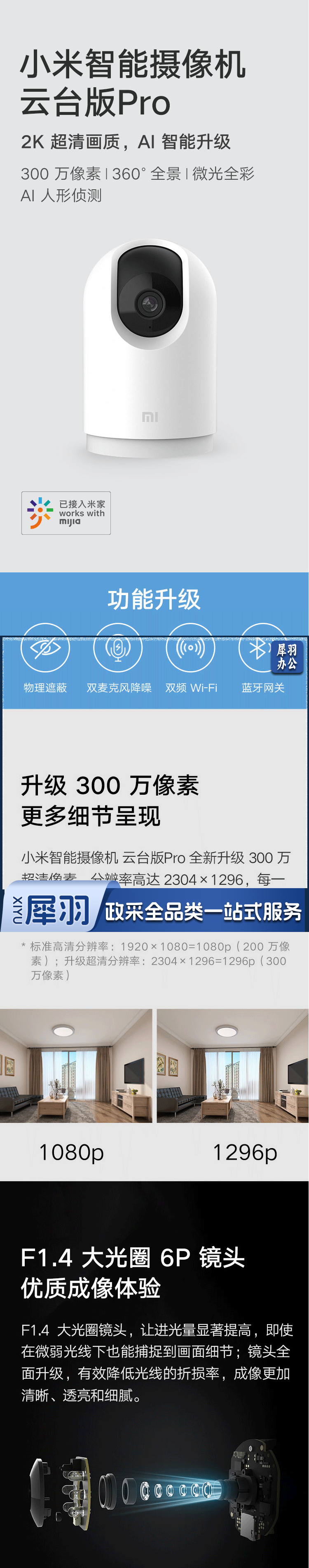 小米 MI 智能摄像机云台版pro 监控摄像头 货号:JC
