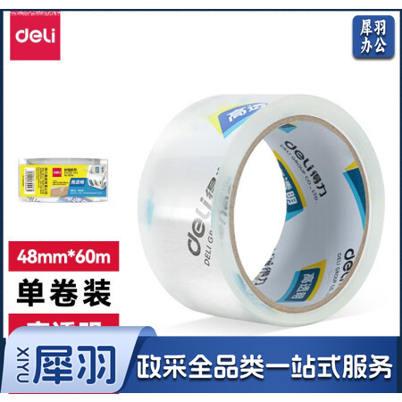 得力(deli) 48mm封箱胶带 透明胶带宽胶带胶布 打包胶带 30247 48mm*60y 30247