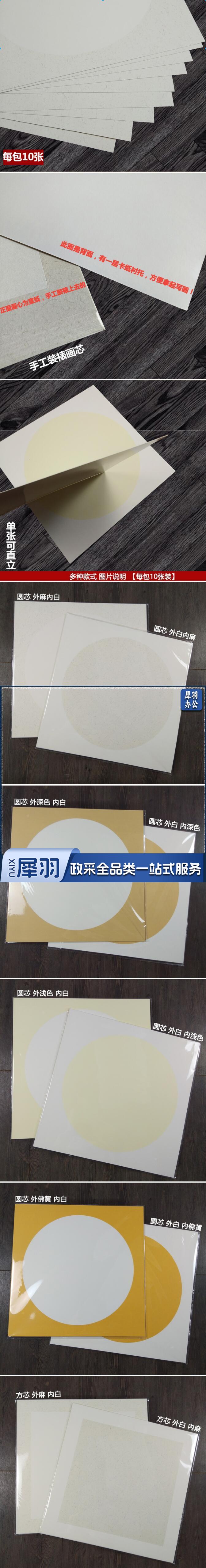 外麻内白 半生熟圆形镜片国画方形卡纸熟宣工笔画硬卡麻纸生宣卡纸 33*33cm 方芯10张/包