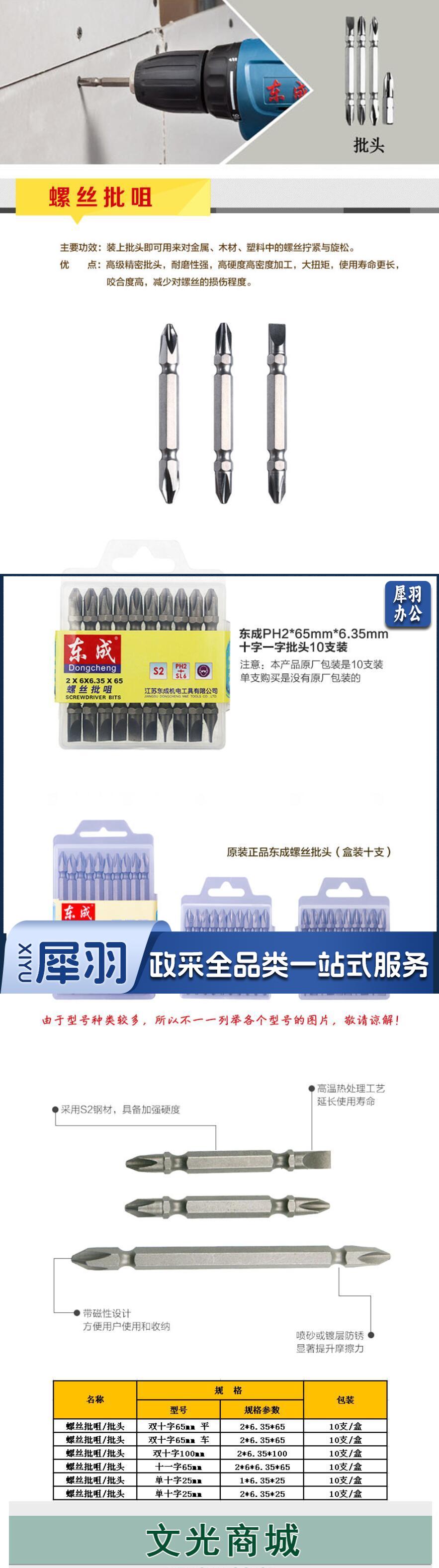 东成 批头 螺丝批咀 10支装 螺丝批头十字一字批头 2*6*6.35*65