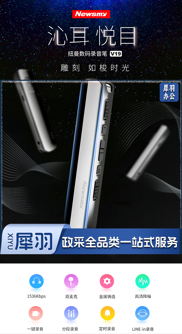 纽曼(Newsmy)录音笔 V19 16G一键录音 音频线转录 微型高清远距降噪录音器 学习培训会议录音速记 深锖色