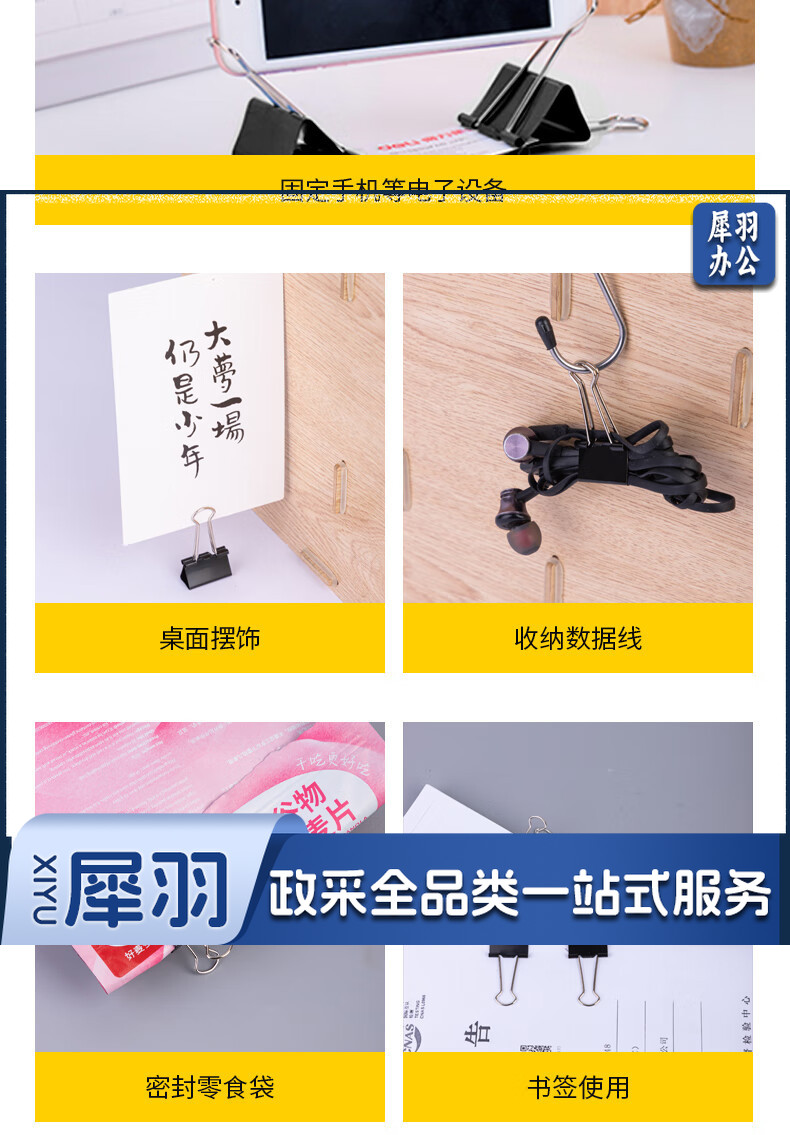 得力(deli) 19MM 黑色长尾夹/长尾票夹大中小号票夹金属夹子鱼尾夹燕尾夹文件夹子