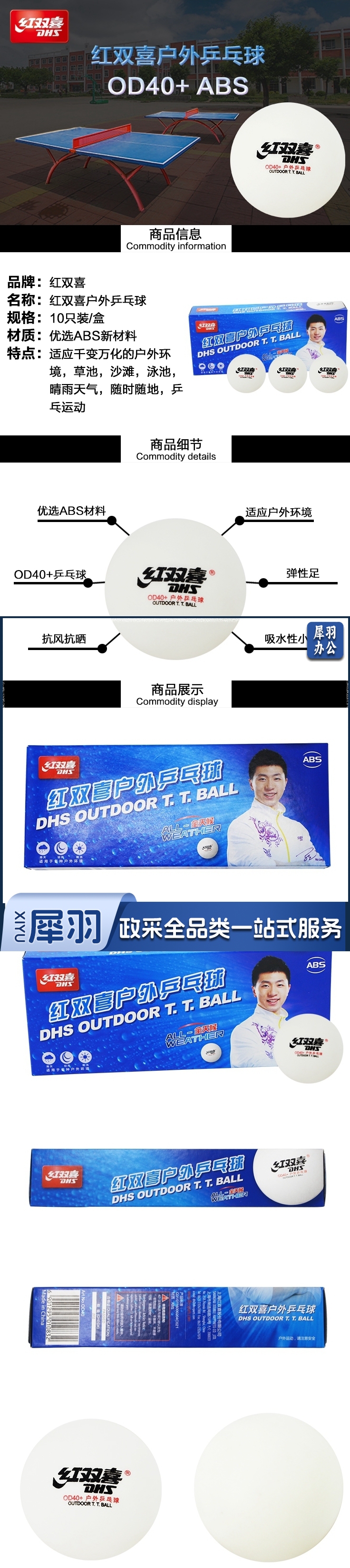 红双喜 DHS户外乒乓球耐打训练10只装