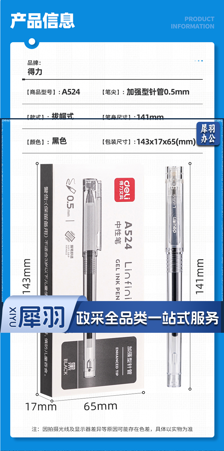 得力A524学生中性笔0.5mm加强型针管(黑)(支)
