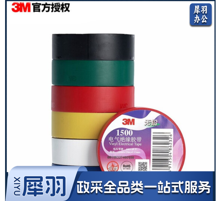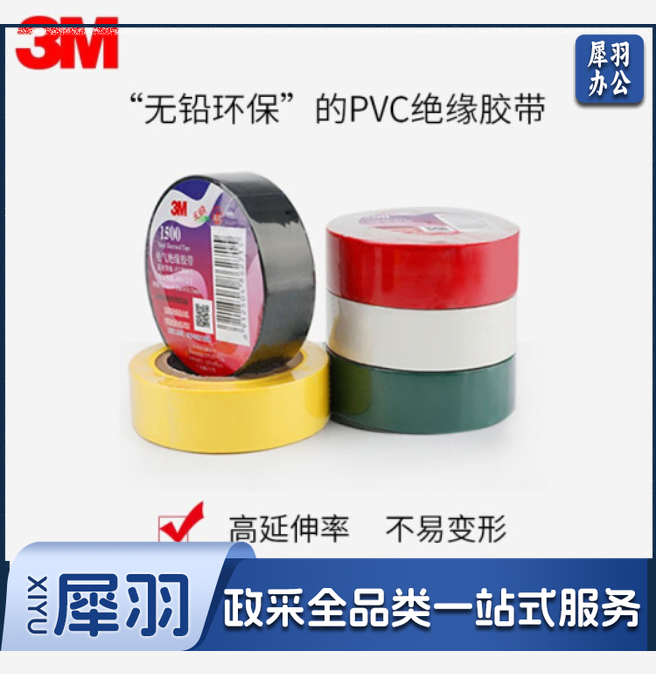 3M 思高 1500# 电工胶带 电气绝缘胶带 PVC电工胶布 无铅600V 防潮耐酸碱18mm*10m*0.13mm*10卷/组(备注颜色)
