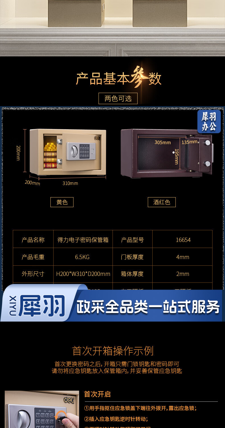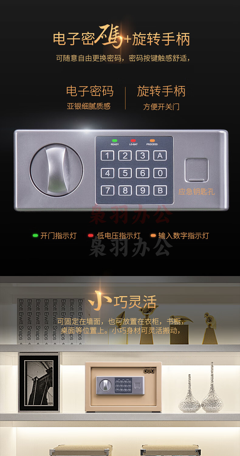 得力(deli)家用办公小型电子柜可入墙入柜床头衣柜隐藏嵌入式保险高25cm【橙色】电子密码款33515S