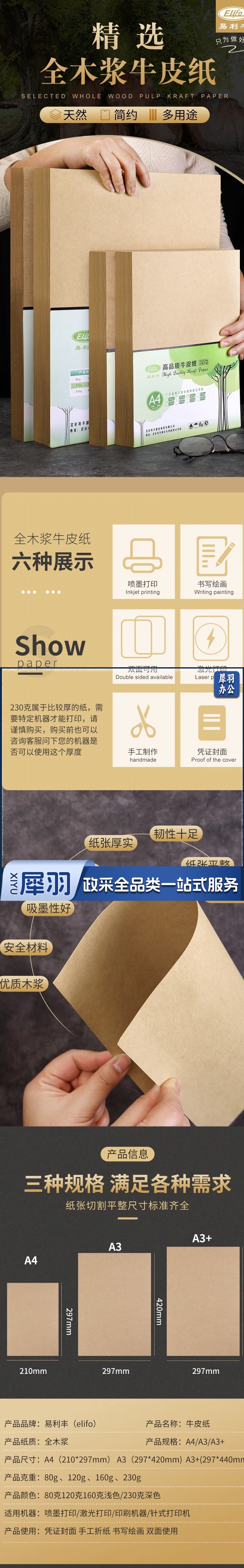 易利丰(elifo)50张230克a4牛皮纸打印纸