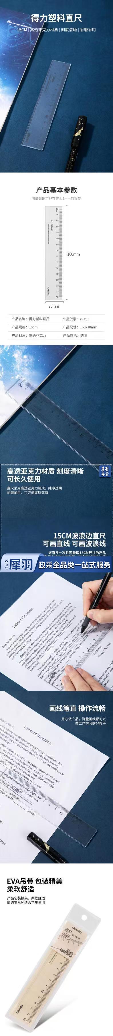 得力文具 79751 亚克力高透学生波浪直尺15cm 清透尺子画波浪线两用尺耐磨 1个