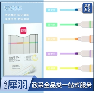 得力(deli) S741 6支装 荧光色系方杆荧光笔套装